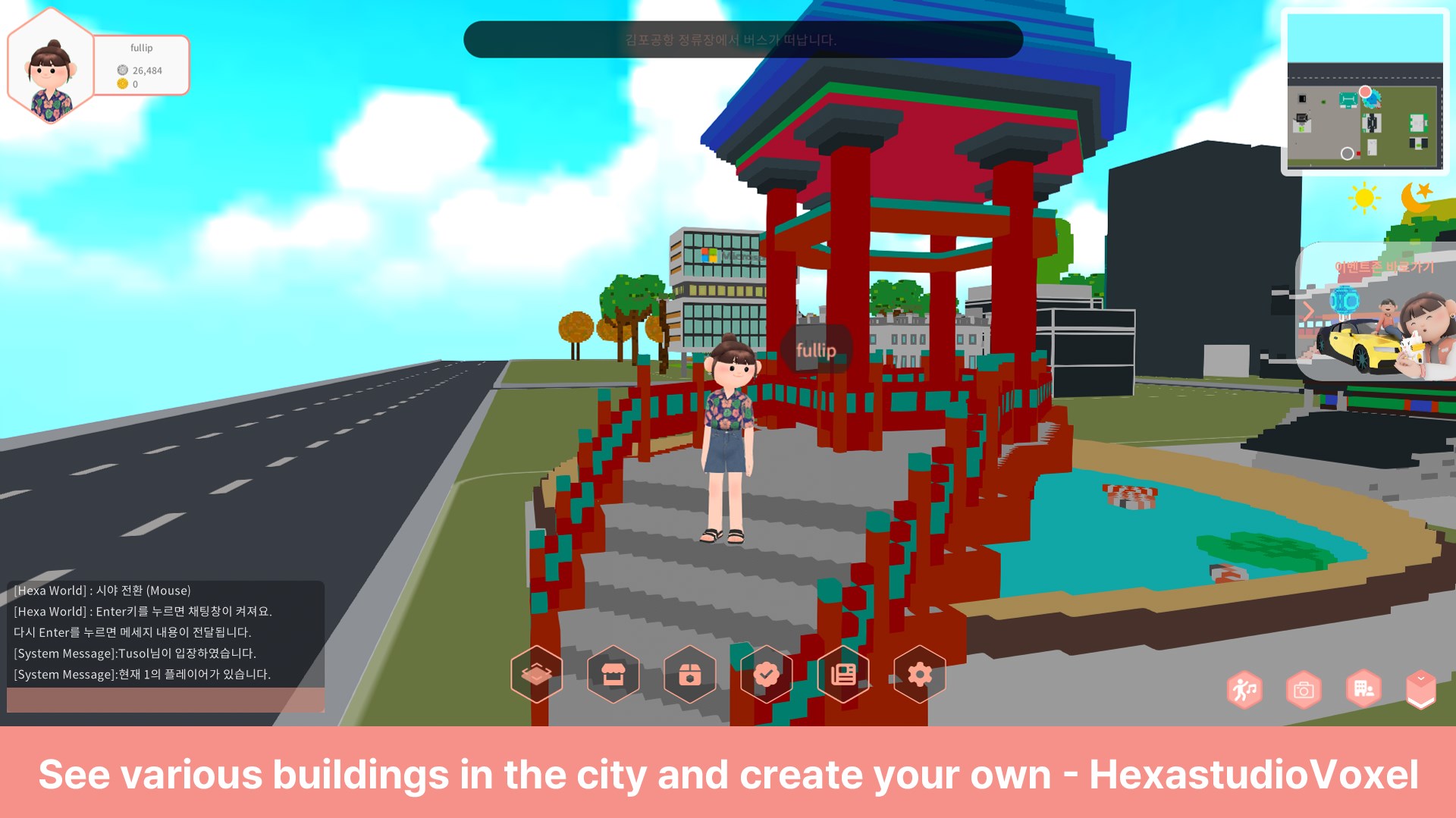 Anyone can create a voxel content, and creators become the owners by forming a common metaverse city.