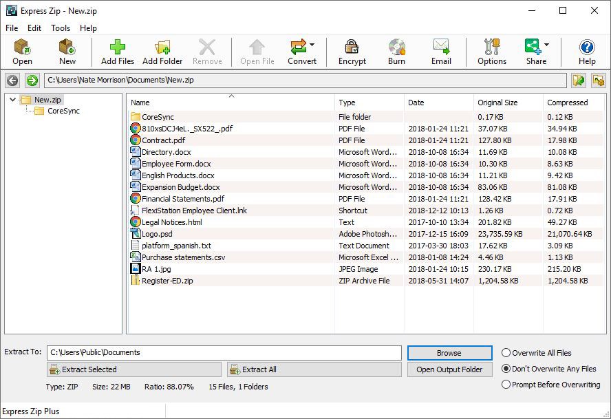 Convert archives to other formatsInstall and compress or extract in secondsSplit large zip files into smaller parts with multi-part split zip archivesCreate and extract zip filesWorks with Express Burn to burn archived files to CD/DVDCompress files for email