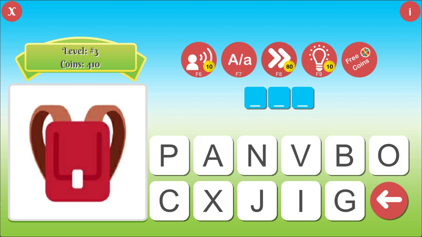 Pics Quiz: A Spelling Learning Game350+ unique spellings with pictures.Hint for each level.Earn unlimited coins through spin wheel.Helpful for class 1 to 4 students.