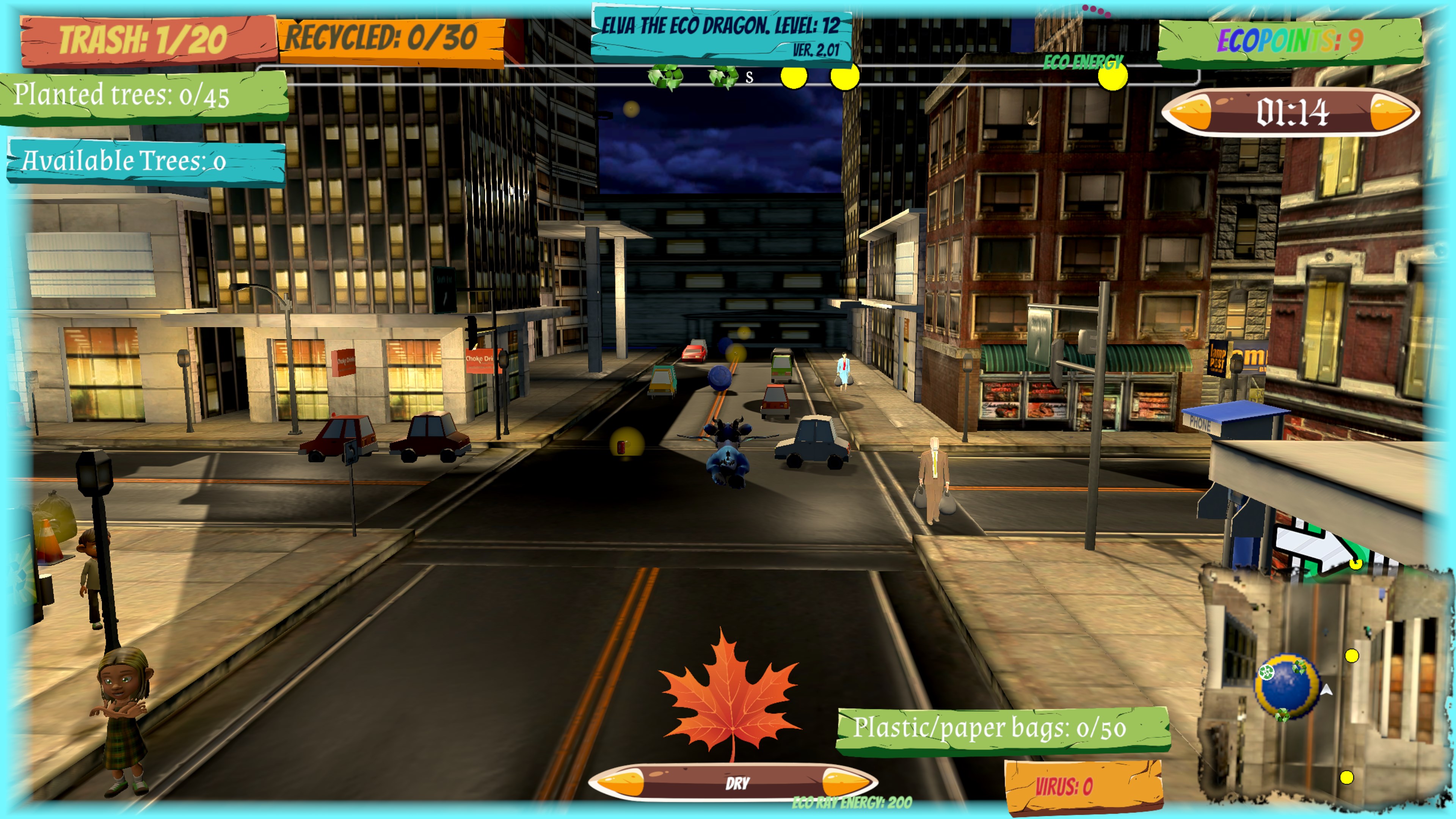 "Elva, the Eco Dragon" is a 3D action-adventure game in third person with Elva, a little dragon who has come to Earth to help us learn how we can protect our wonderful planet.