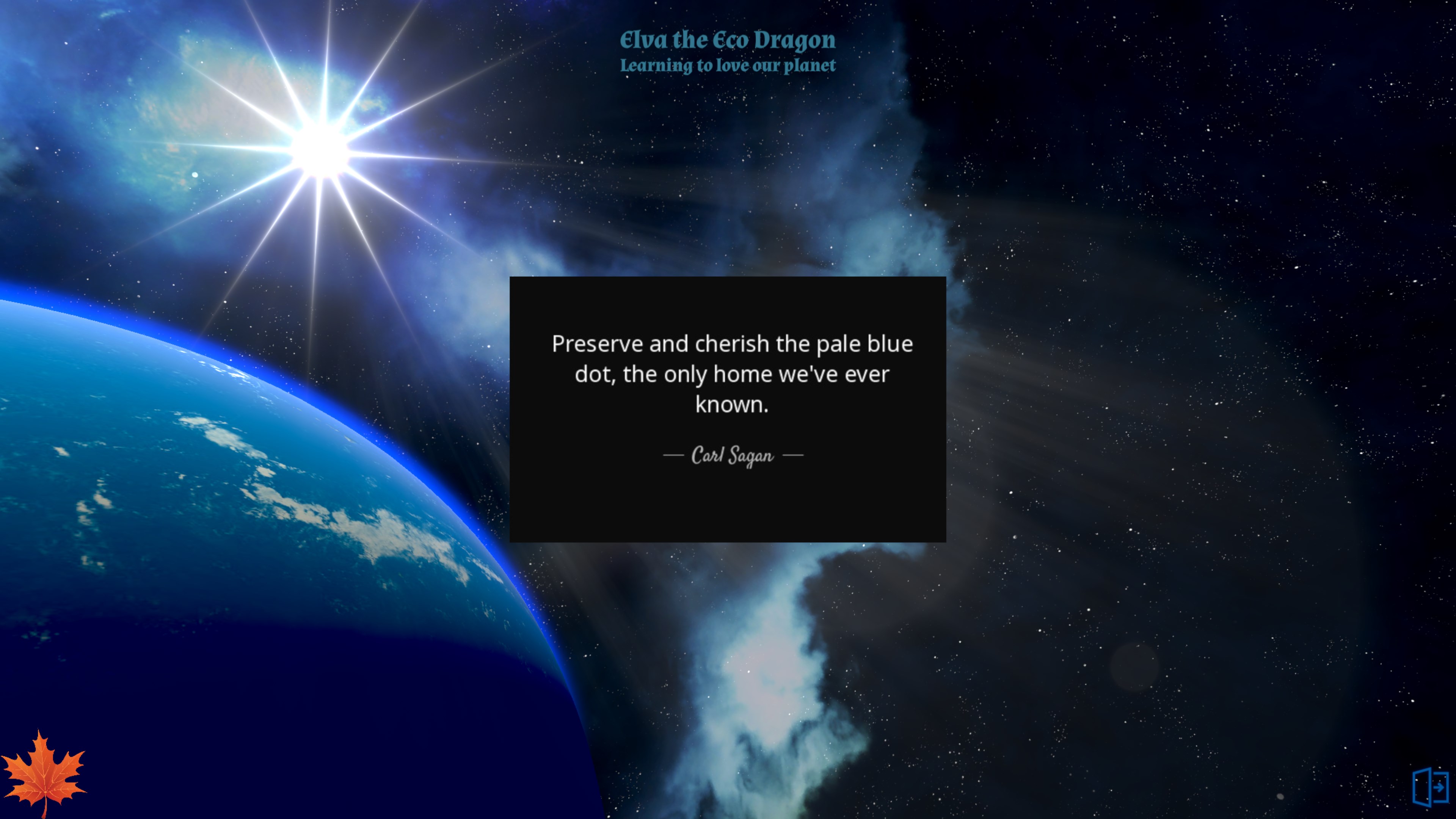 Taking care of the planet is a game in "Elva the Eco Dragon". Learning to save the planet.