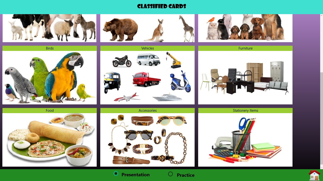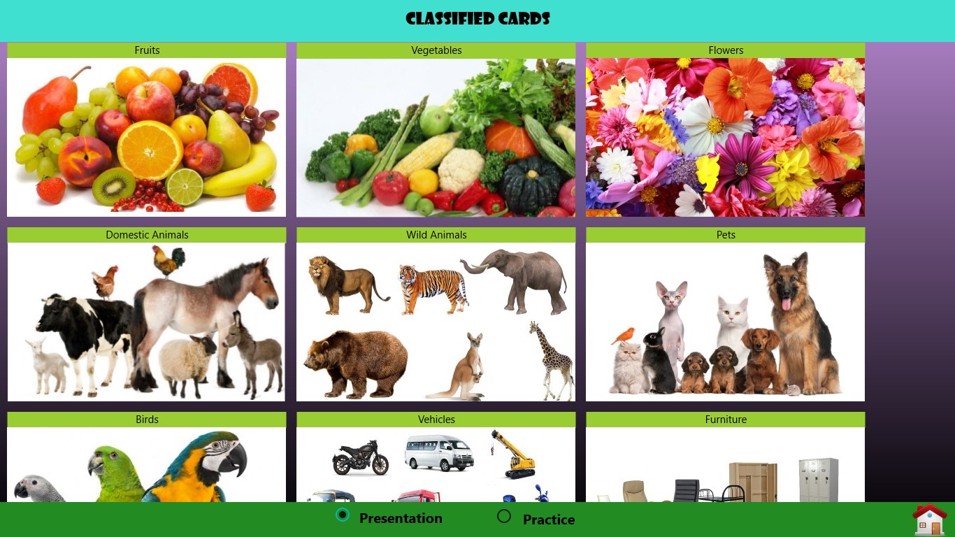First we present activity to the child which is called as Presentations . For mastering this activity Practise session is included. And some activities has exercises also.