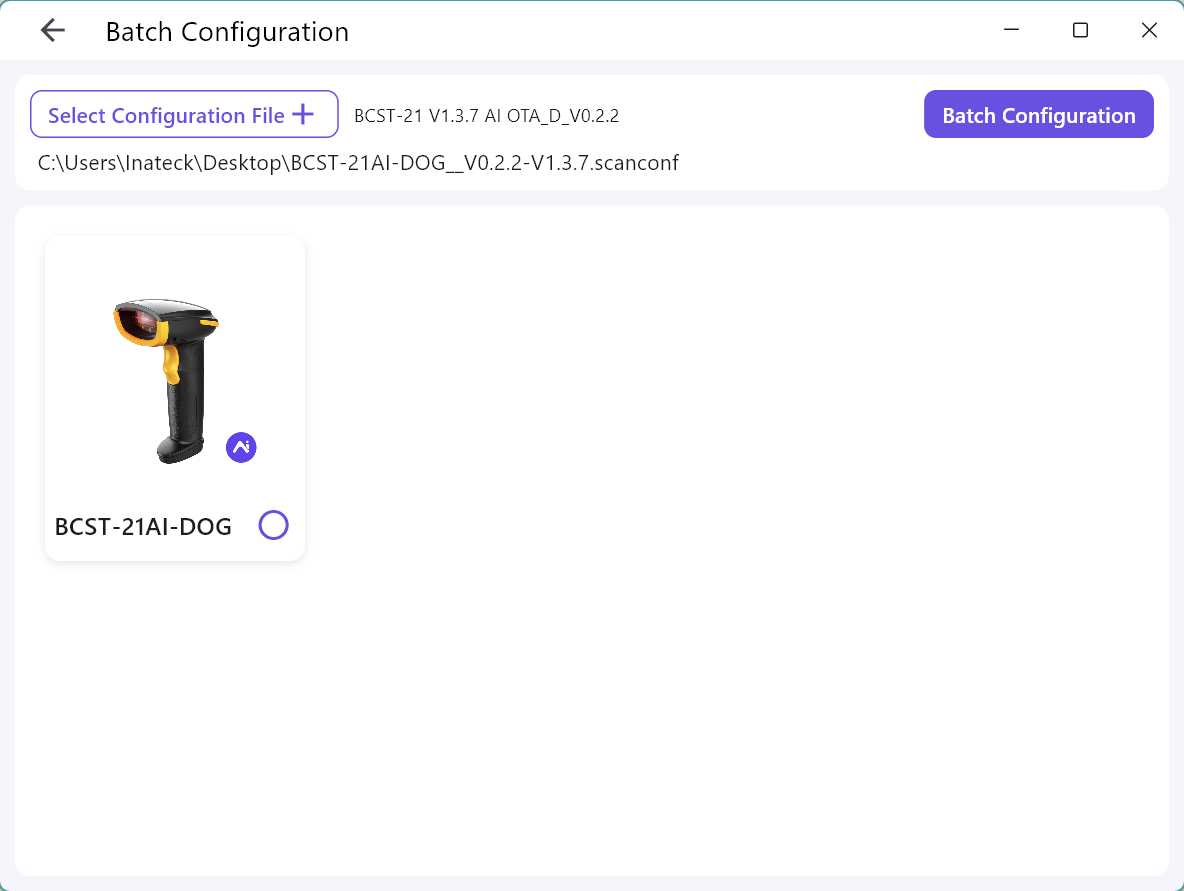 USB direct connection technology and batch configuration features are only supported by AI version scanners. Some models may need firmware updates first. Please contact customer service if needed.