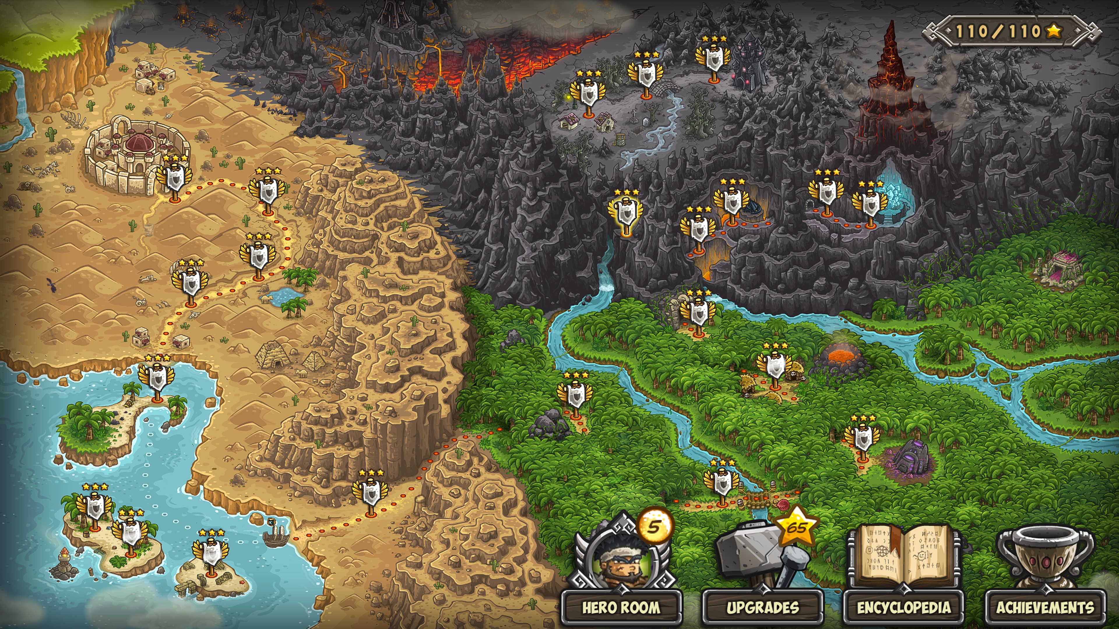 Fantastic Tower Defense game with lots of strategic decisions. Great power-user stuff like Reinforcements, Meteor Strikes, Heroes and more.Fortify the frontier in exotic news lands - hold the line in deserts, jungles and even the underworld!8 new specialized tower upgrades! Slice, sizzle, and stomp your foes with Crossbow Forts, Mighty Templars, Necromancers, and even Earthquake Machines - hey, we told you we were shaking things up.Over 18 tower abilities! Unleash Death Riders, pestilence clouds, or Assassins that steal and kill your enemies!Over 40 enemies with unique abilities! Stay on your toes as you fight through desert sandworms, tribal shamans, nomad tribes and underground terrors.16 legendary heroes. Choose your champions and train their abilities! Each has unique specialties that fit different play styles! and More to come!Special units and features on every stage! Watch out for the Black Dragon!Merciless boss fights! Hey, we told you to get those upgrades...Upgrade system allows you to min/max your towers towards your preferred strategy.Hours of gameplay with over 70 achievements!Classic, Iron, and Heroic game modes to challenge your tactical skills!3 difficulty modes! Are you up for a real challenge? Go with Hard mode!Intoxicating charm with a rousing score, full-bodied voice-overs and lovingly illustrated cartoon art! (Complete with cartoon blood, naturally.) In-game encyclopedia! True warriors know thine enemies... and their towers. Study up!