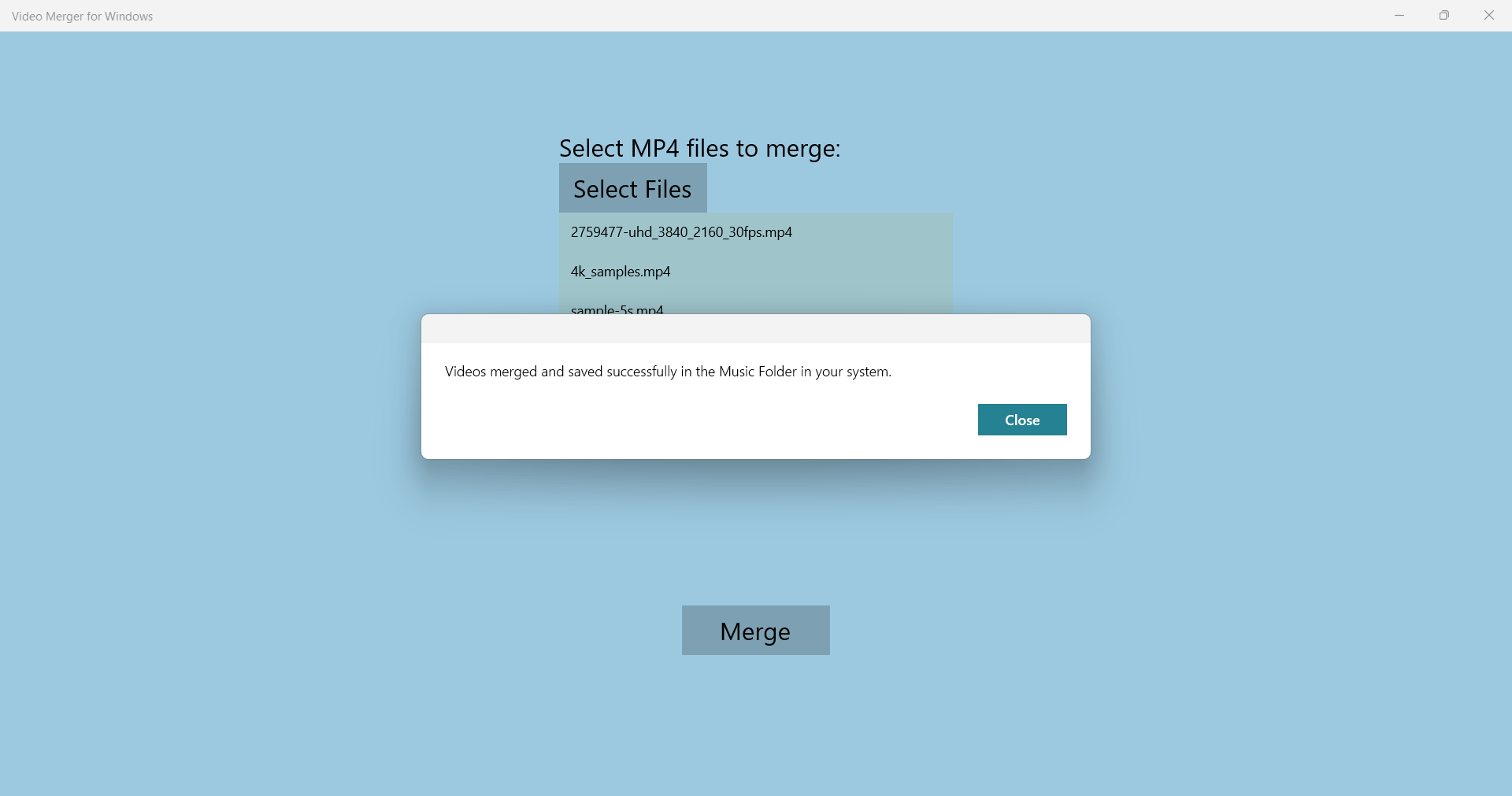 5. The app will merge the files and save the output file to your device