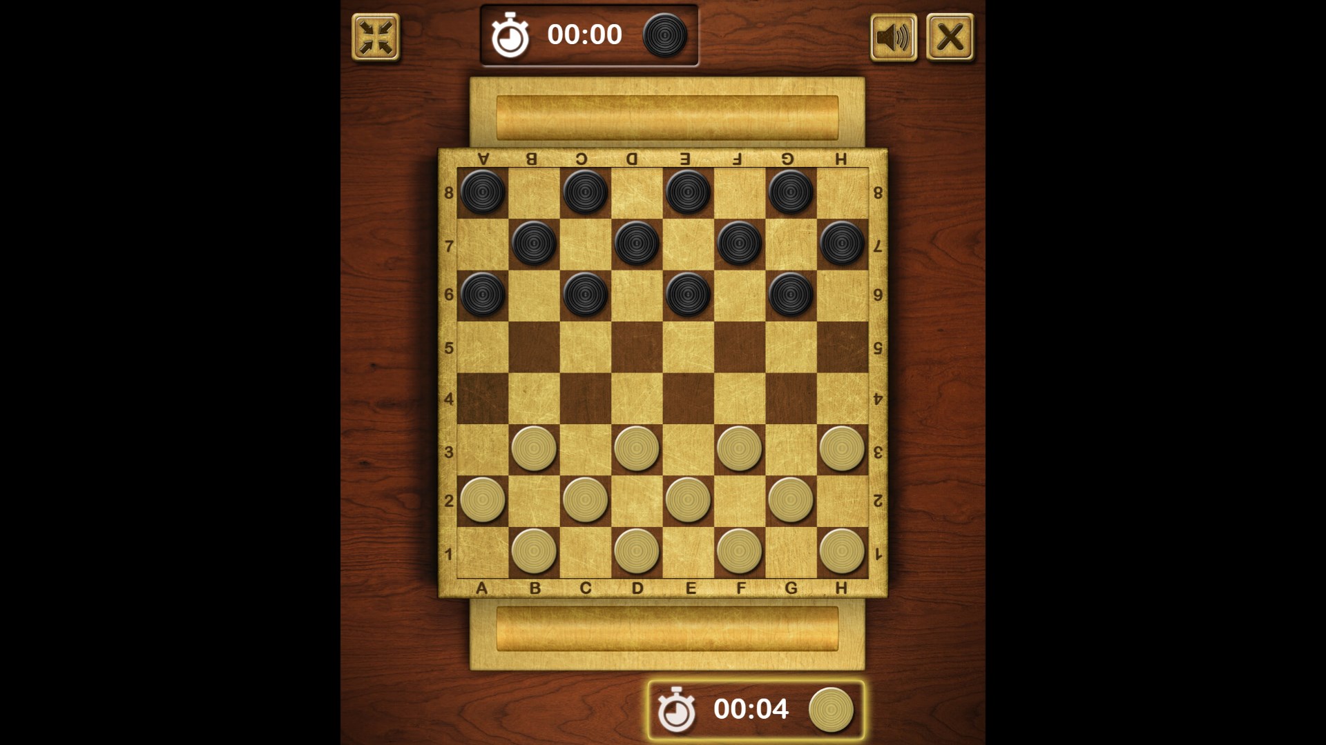 Classical checkers game on wooden boardPlay in one person mode against computer AIPlay in two person mode against a friendTurn sound on or off