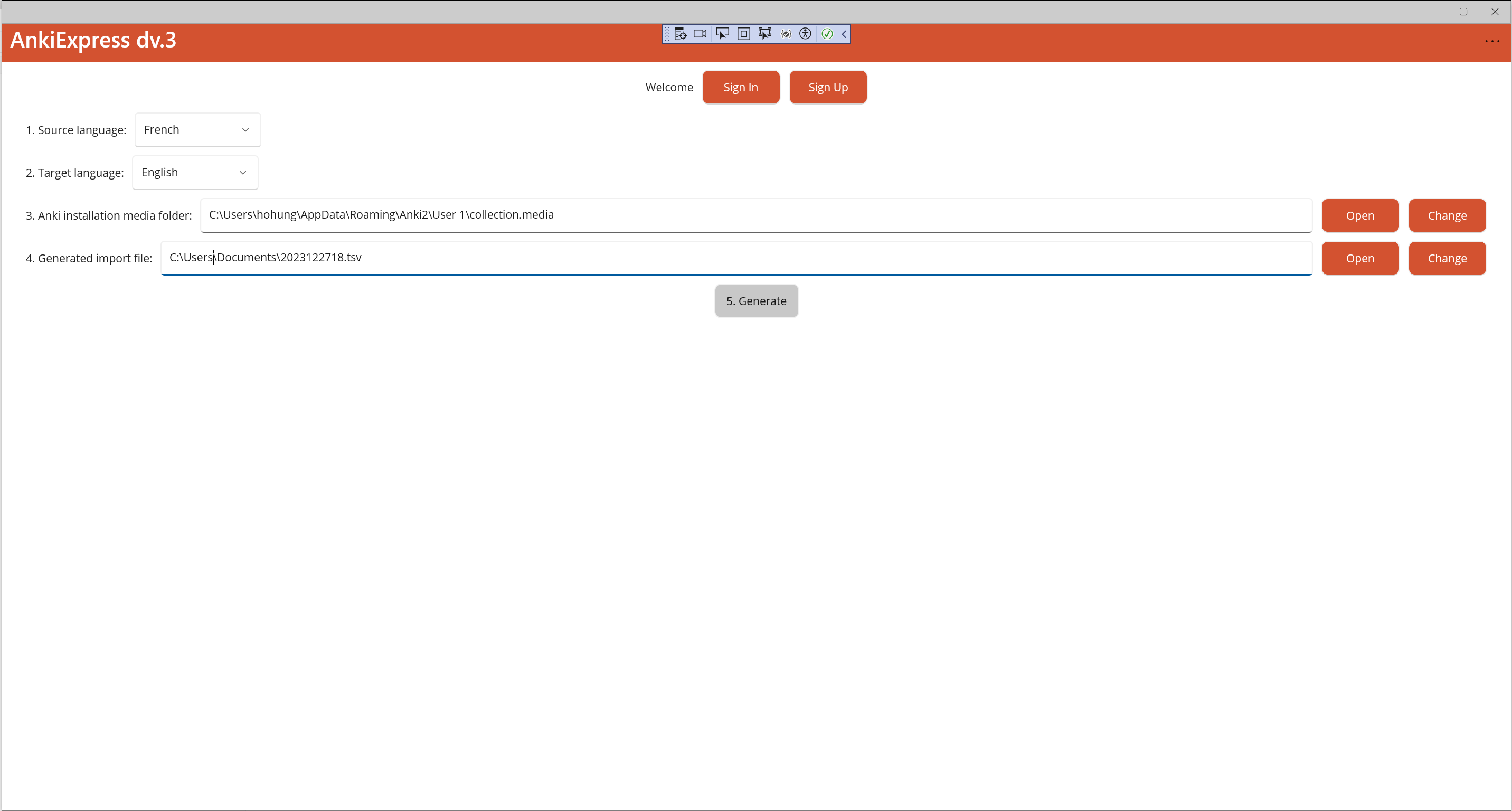 Desktop companion app for AnkiExpress, which helps you collect new flashcards while browsing the web. Use the browser addon to collect text. Use this companion desktop app to generate translation and audio in 1 local file, which can then be quickly imported into Anki