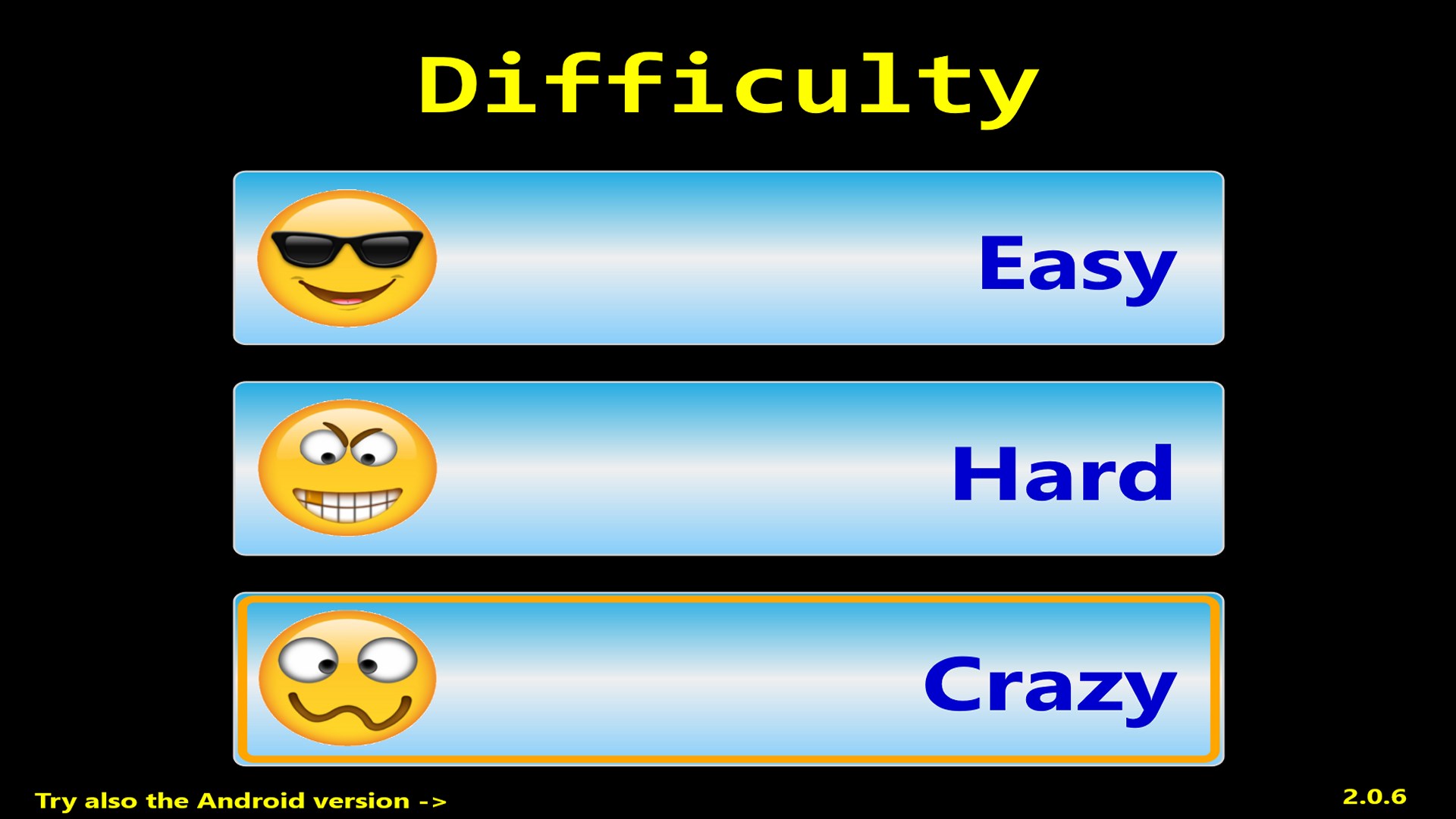There are 3 different levels of difficulty: EASY, HARD and CRAZY. Beginners, advanced players and experts can all have fun while playing.