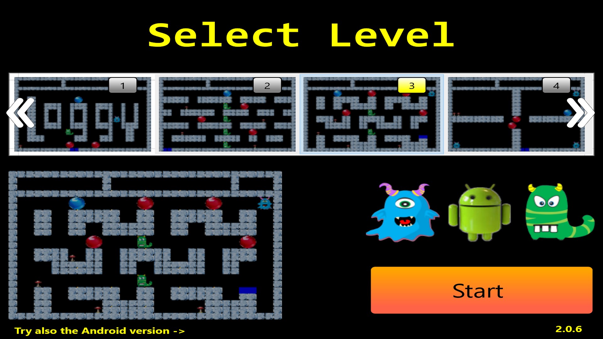In this puzzle game you control Loggy, a little robot. The goal of the game is to help Loggy push the blue ball onto his blue platform in each level.