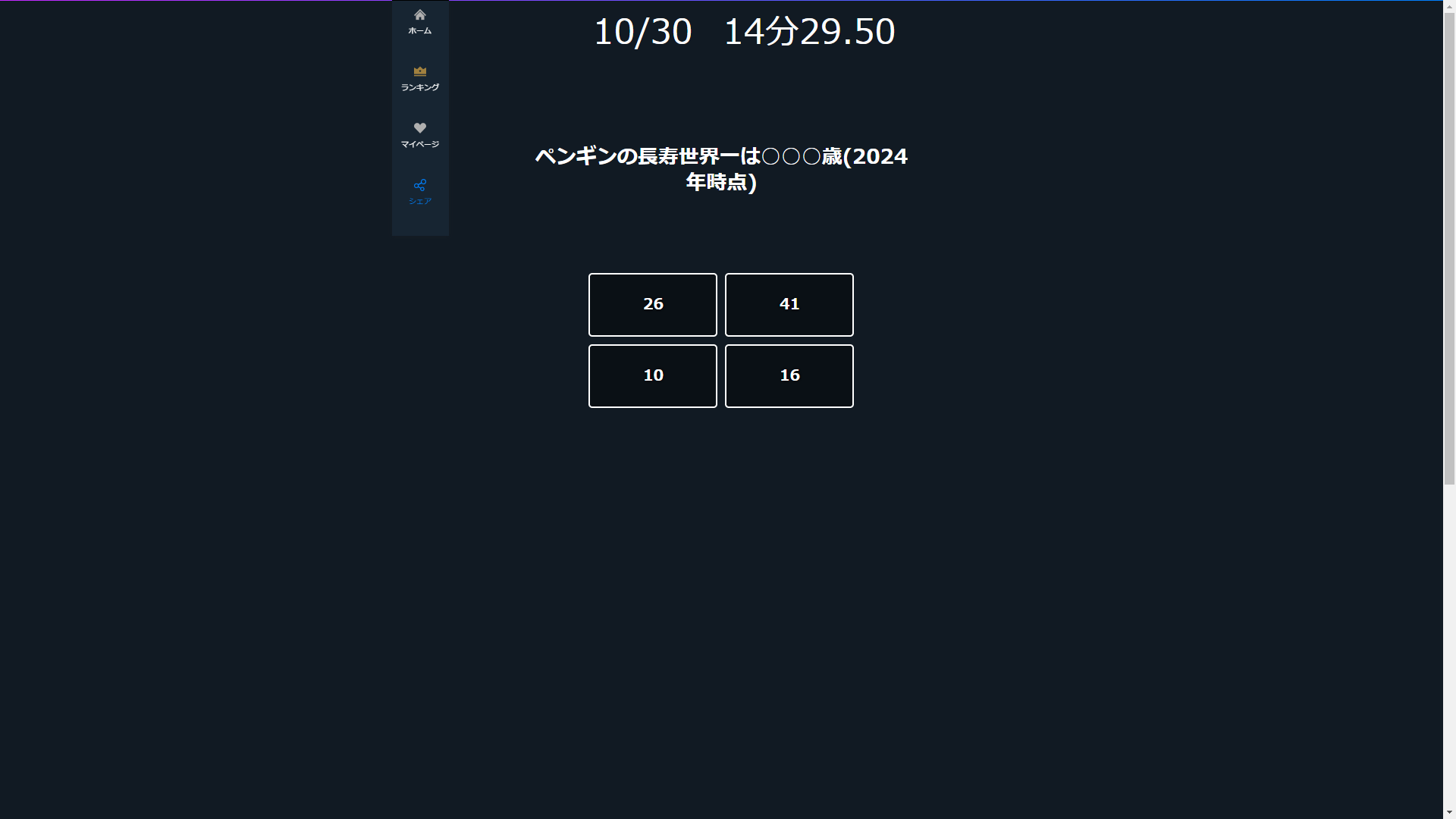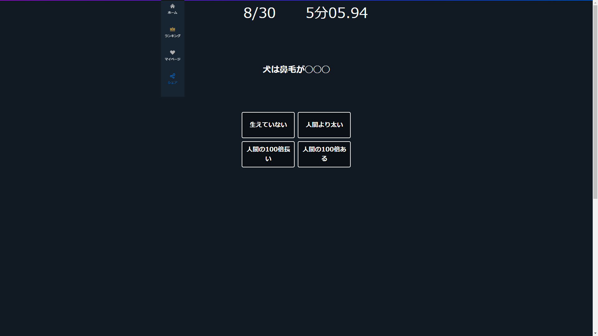 正解数やクリアタイムも表示されるため、動物の雑学の学習記録としても活用が可能ですので、是非難しい動物の雑学を覚えるのに活用頂ければ幸いです。