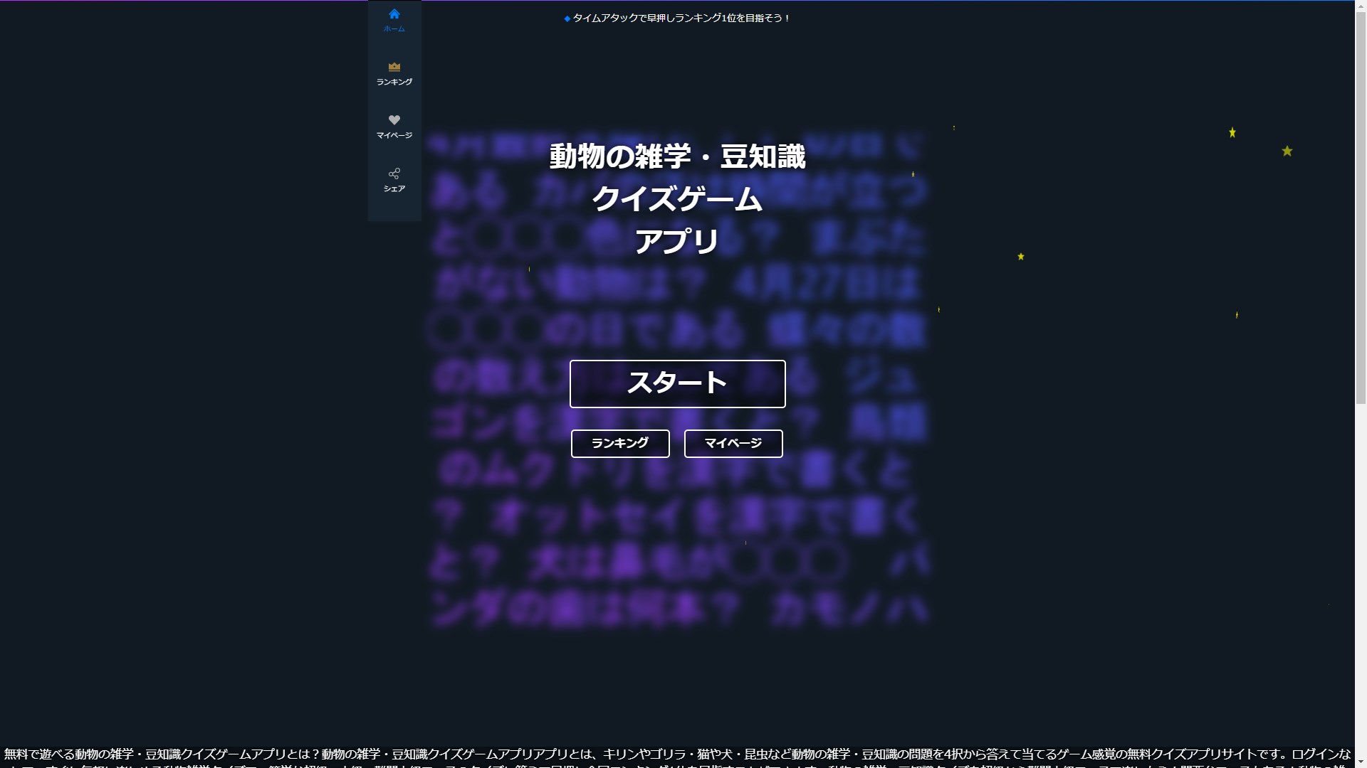 煩わしい会員登録などは一切ないので、気軽に動物の雑学・豆知識クイズを楽しんで頂ければ幸いです。