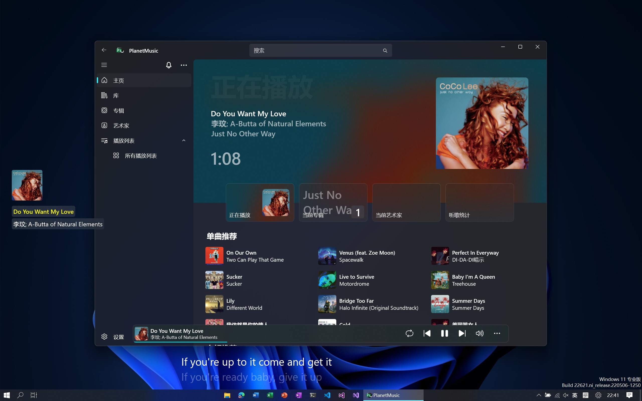 音乐播放器滚动歌词桌面歌词UWPGameBar小组件自动分类