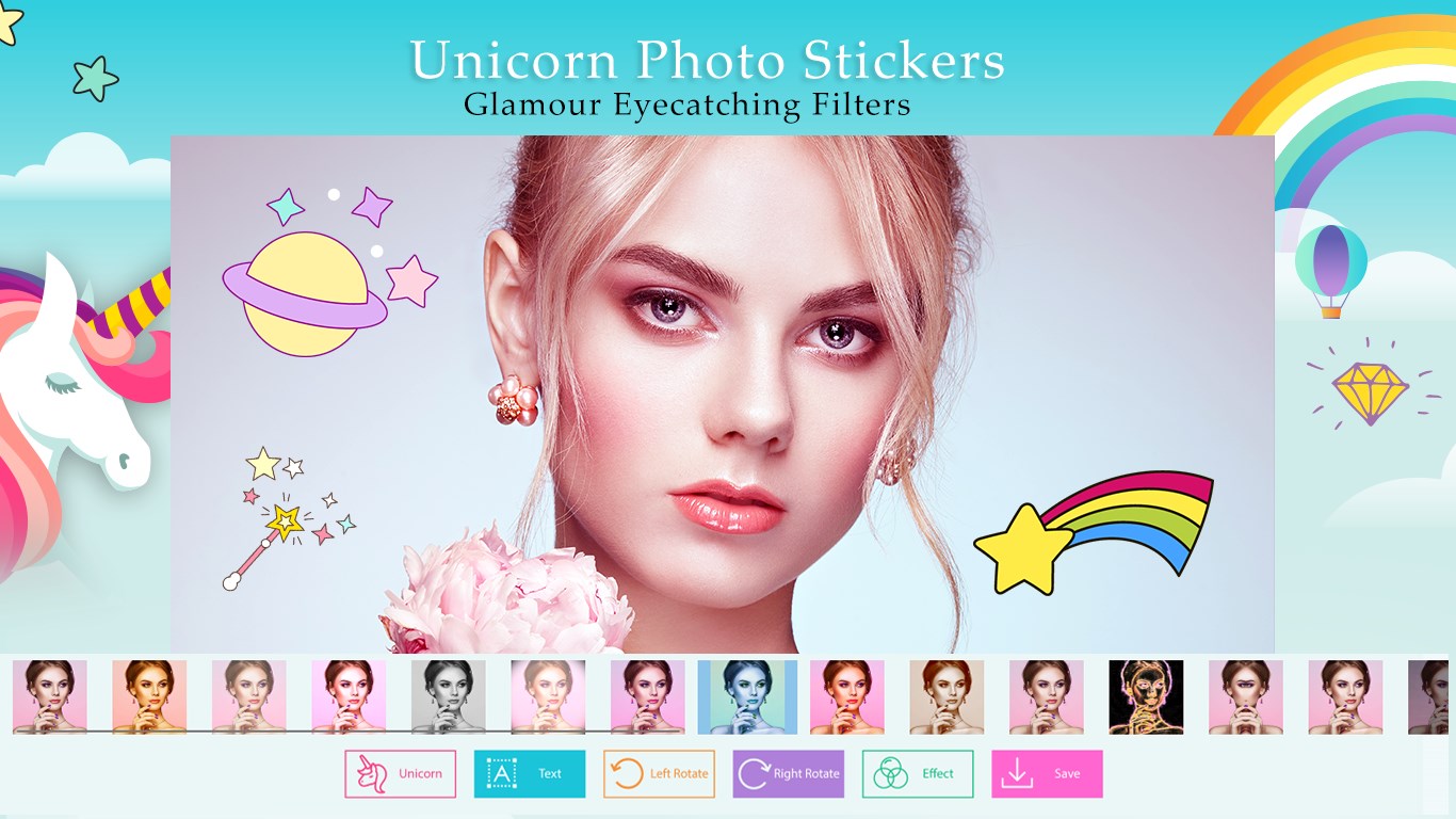 Get this latest Unicorn Photo stickers cute Photo Editor app in your mobile/PC, to edit photo with adding cute unicorn stickers, pony photo, baby unicorn emojis, and unicorn cupcakes. Take selfie using sweet camera editor and edit it with special pink unicorns for girls who are a selfie lover.