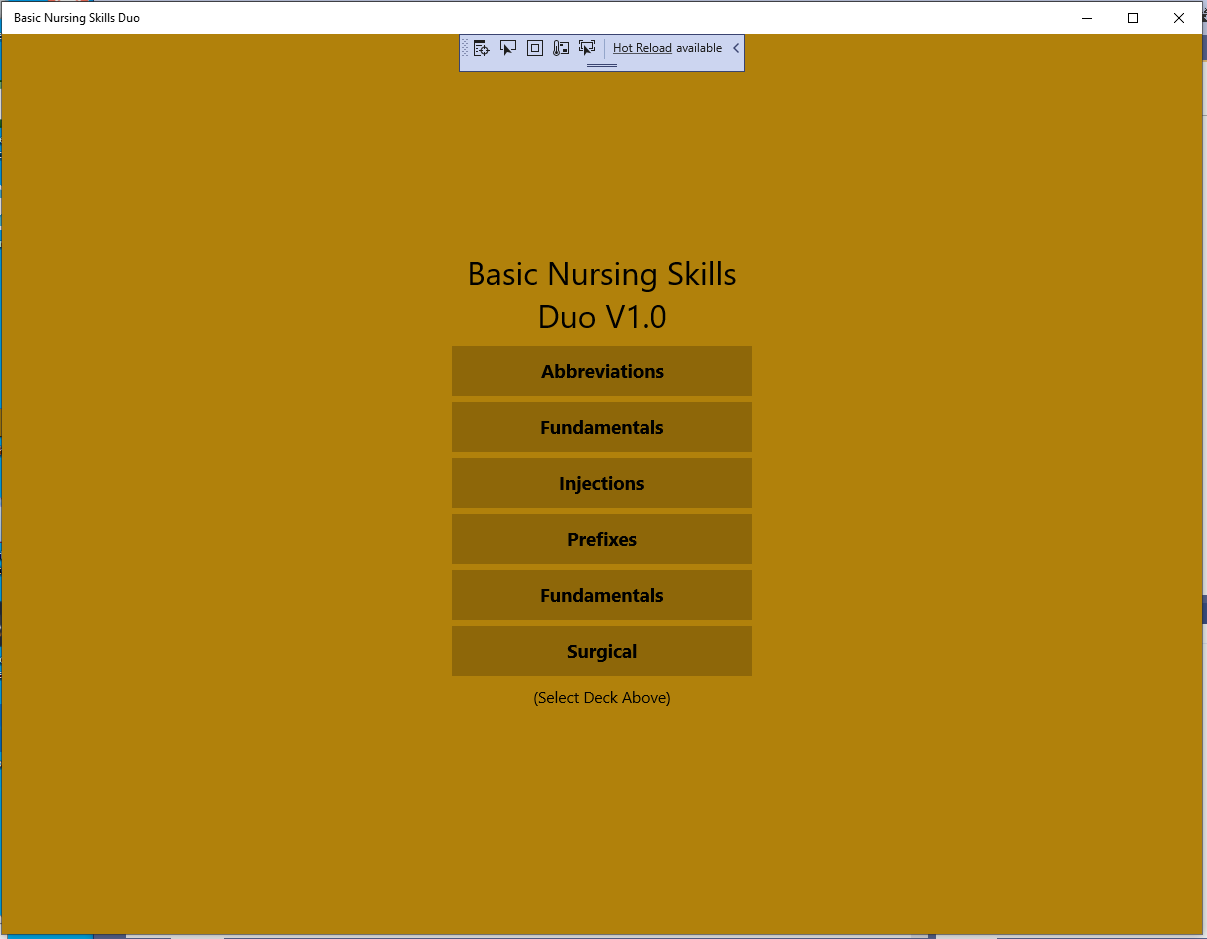 Nursing Basic Skills Deluxe, a study aid for nurses and nursing students. Decks included: Abbreviations, Fundamentals, Injections, Prefixes, Surgical.