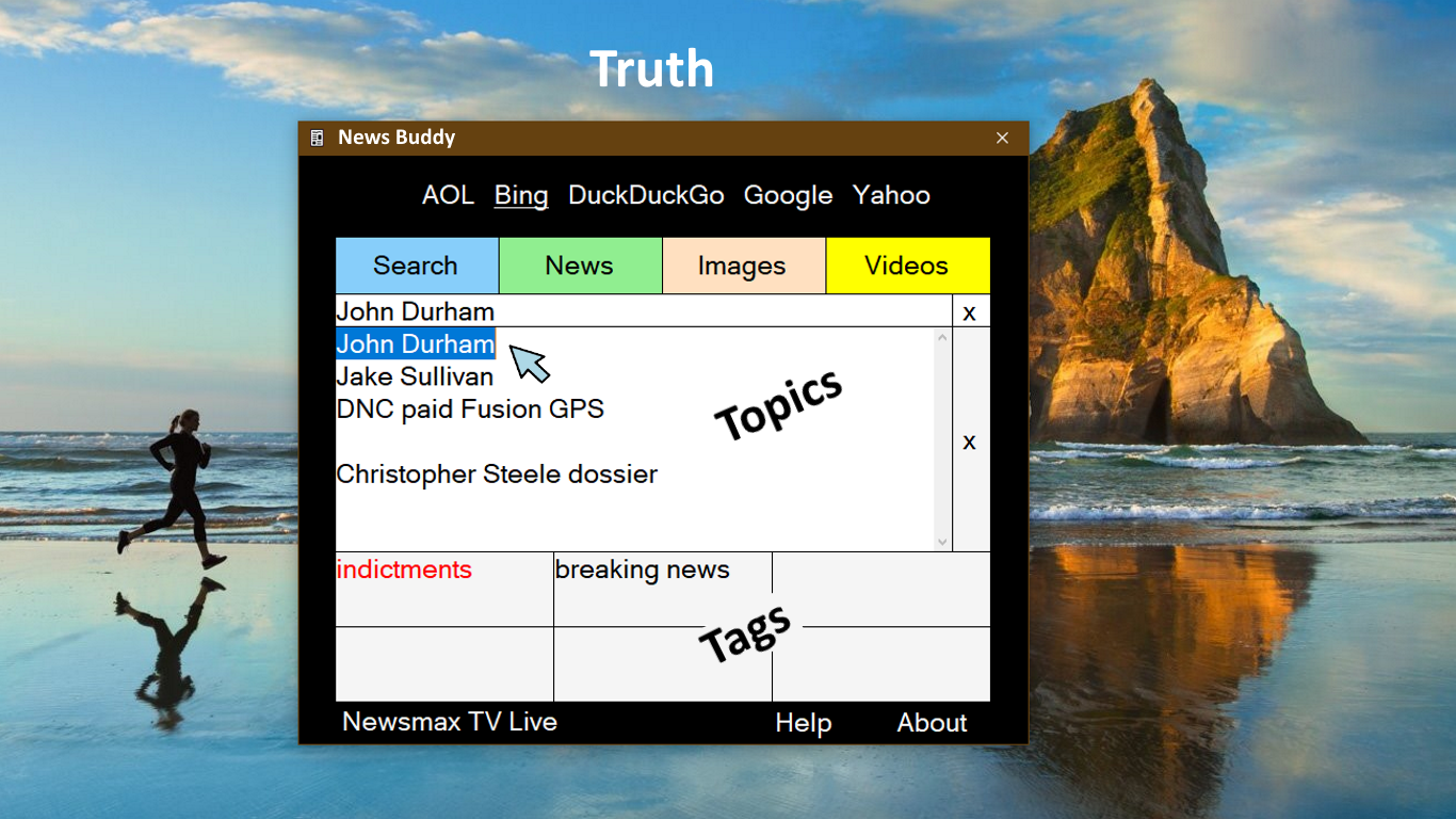 Custom News TopicsOne tap searches, news, images, videos5 Search EnginesDynamic search tagsSearch topics with memory100% customizableNewsmax TV Live
