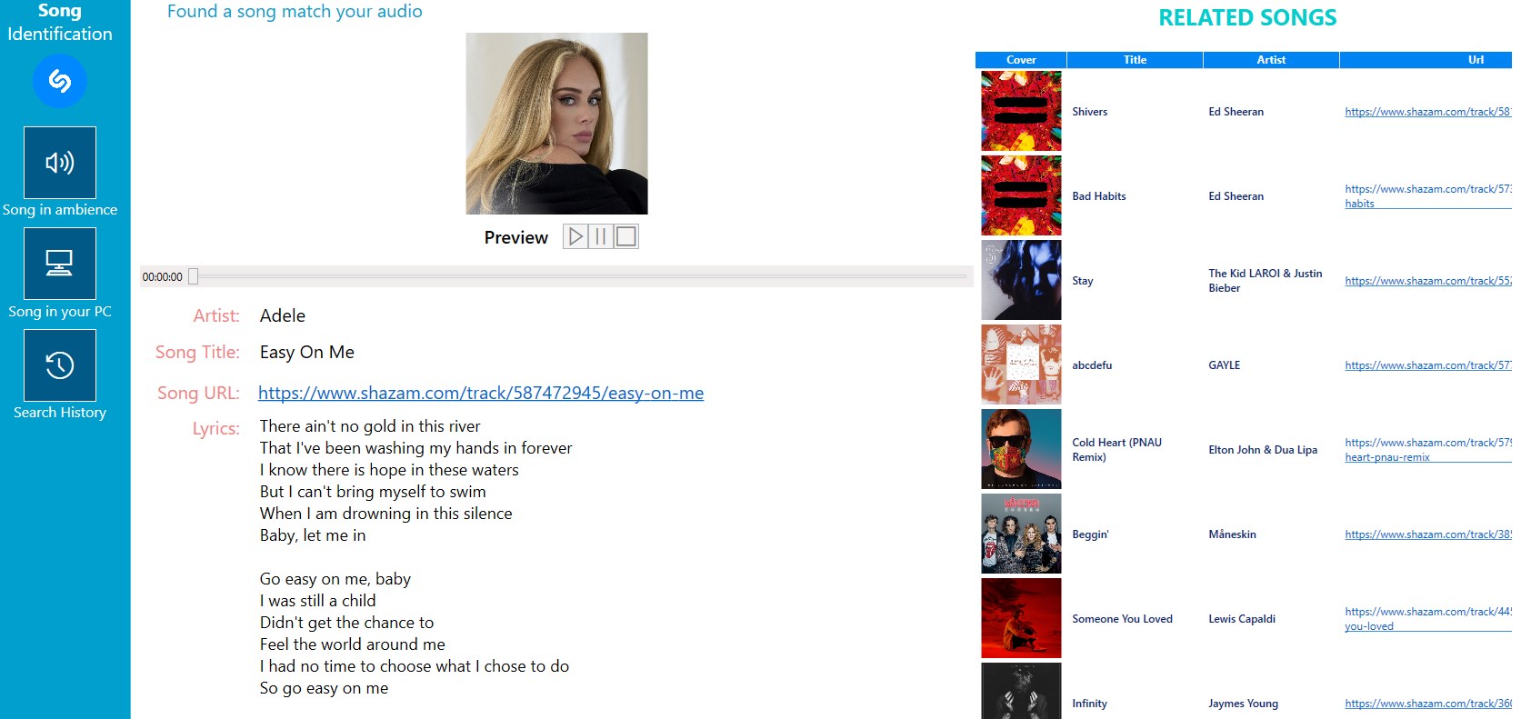 With this identifier app you can explore album songs, read artist biographies and discover the top tracks from the identified song artist.
