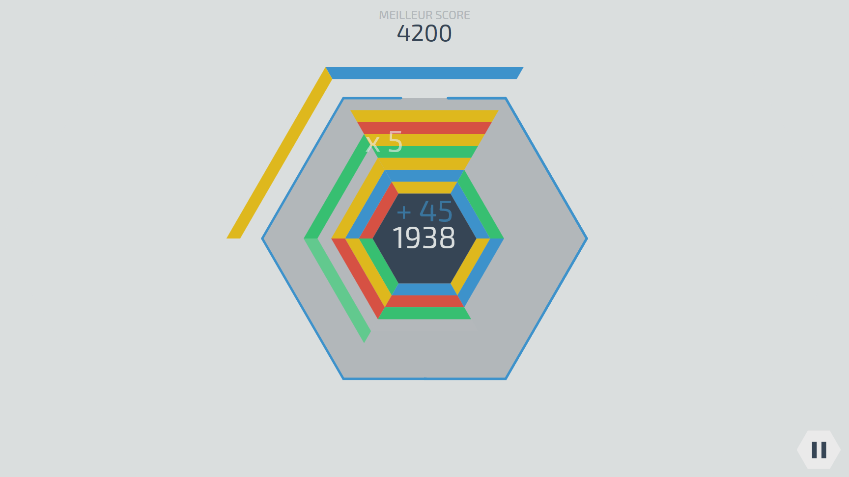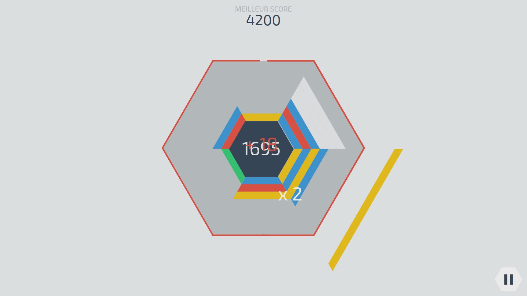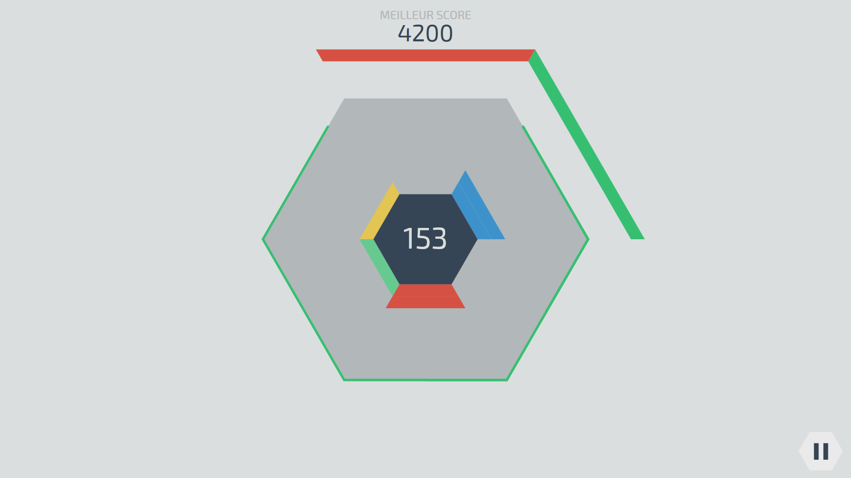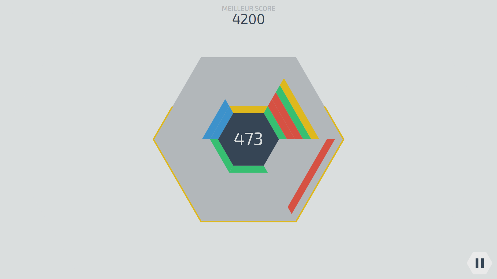 Le but d'Hexagonum est de faire disparaître les blocs qui tombent avant qu'ils ne quittent la zone de jeu (l'hexagone gris).