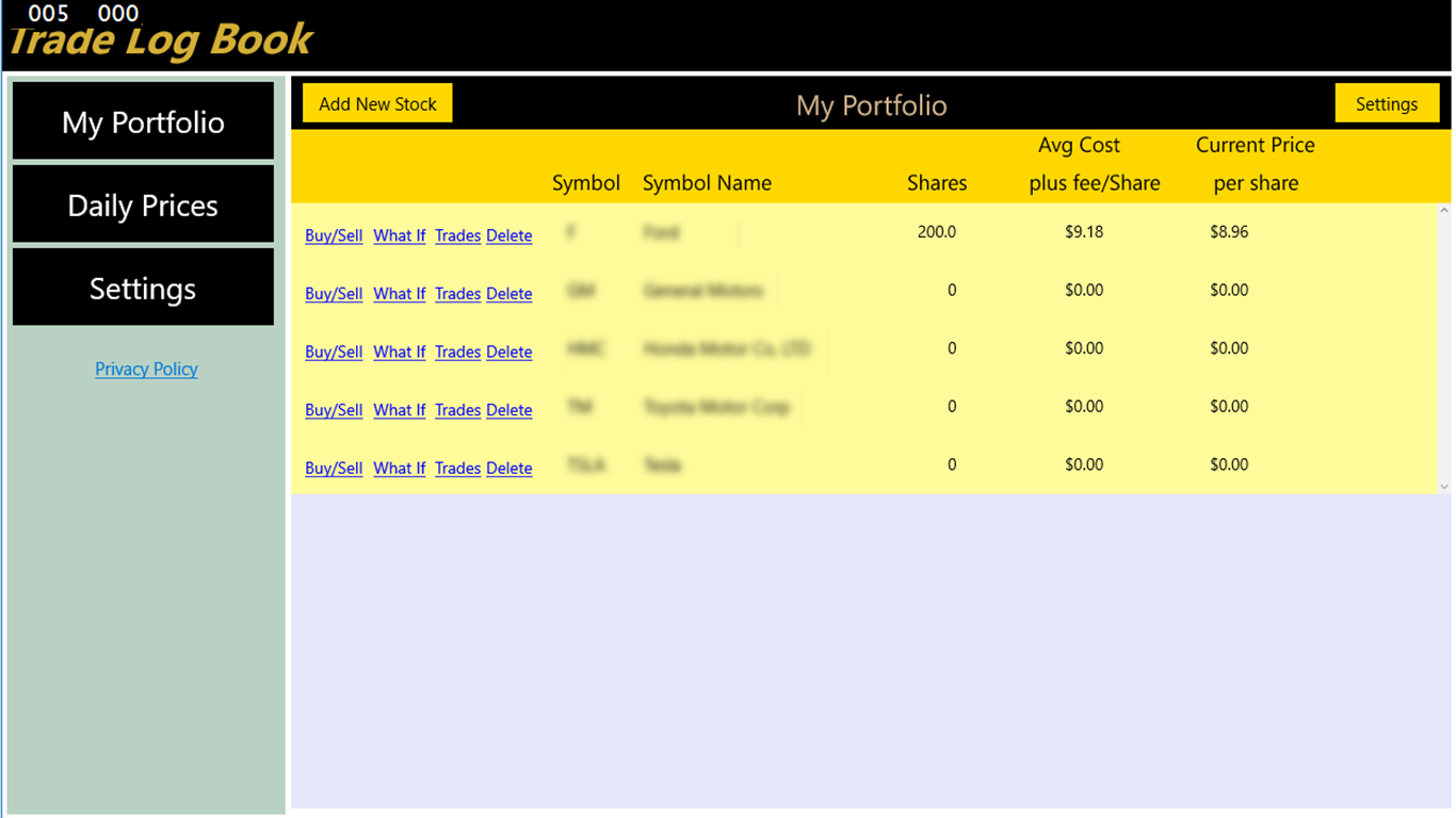 Calculate Average CostSee Profit/Loss in single glancePerform what if trades to learnGet Current Price from Web Service CallCalculates profit minus taxesTrade