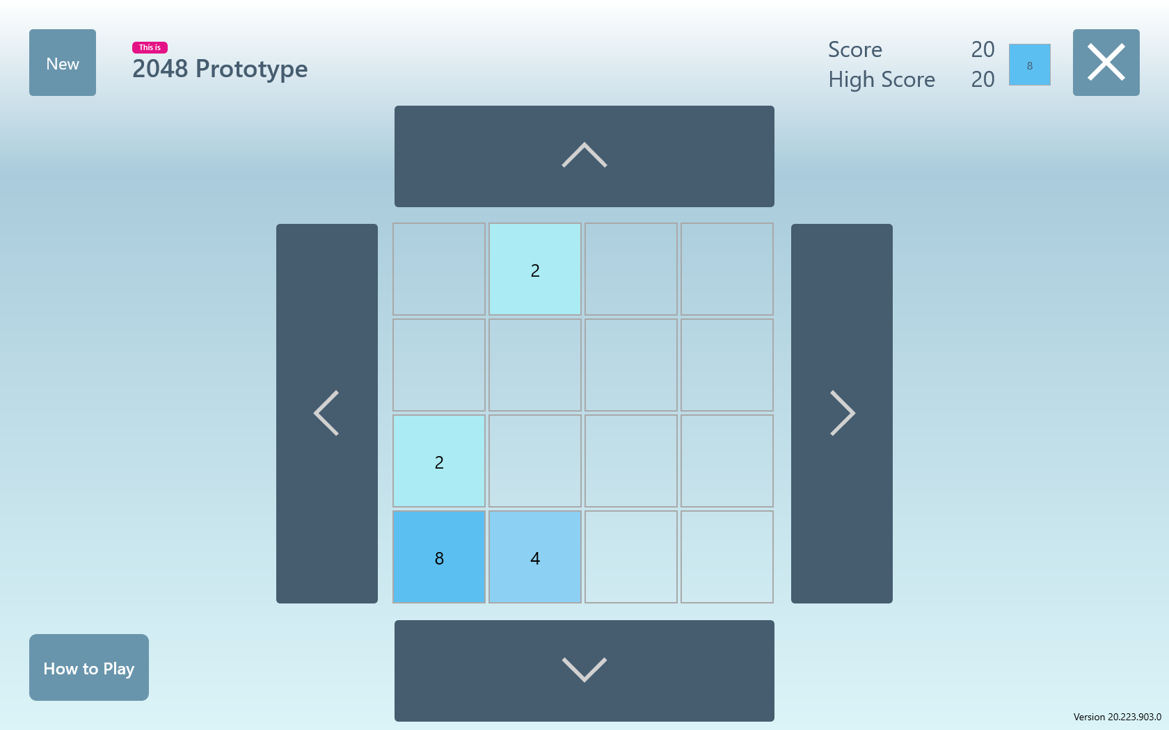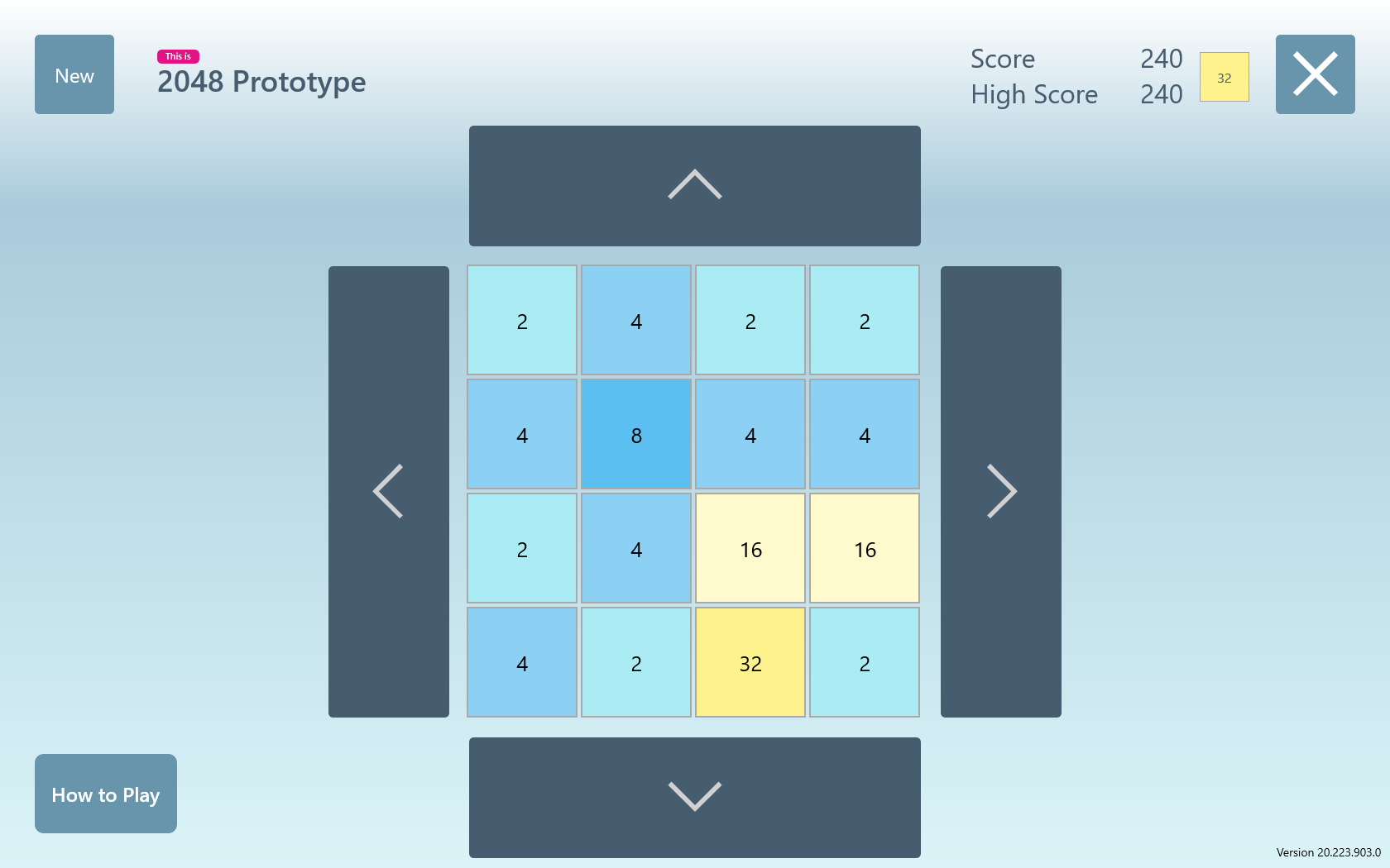 2048 Prototype is a puzzle based on a grid that gradually fills with numbered tiles.