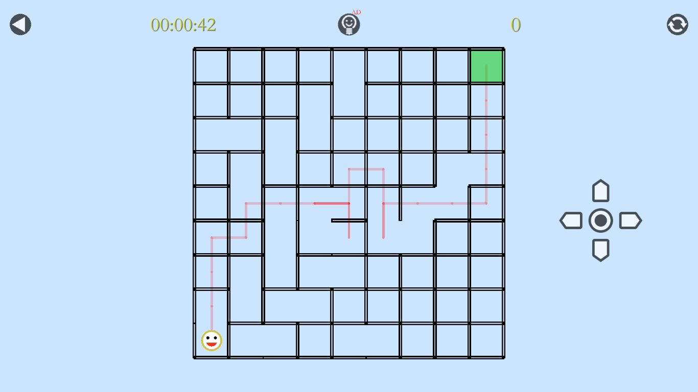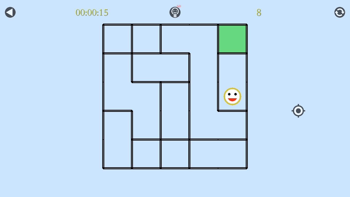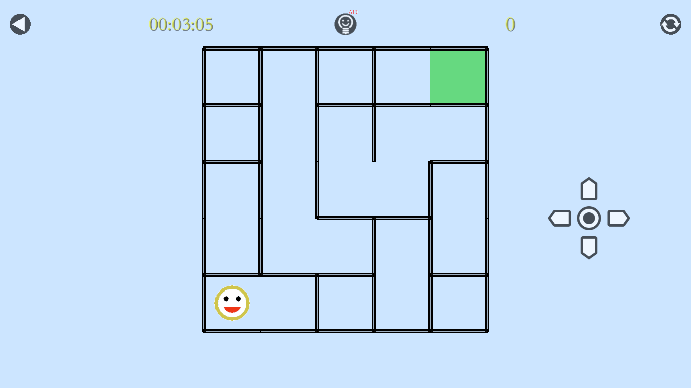 A. Move: the smiling face can move in four directions, but it cannot pass through the wall. There are three ways to move: click the direction button on the screen, slide on the maze and use the direction key on keyboard(if having).
