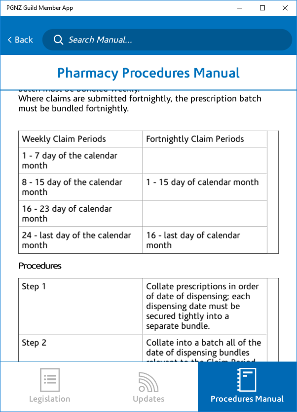 The Pharmacy Procedures Manual is a resource for community pharmacy. It includes relevant procedures and processes required for claiming government funding and other relevant procedures and processes linked to the current legislation and service delivery.