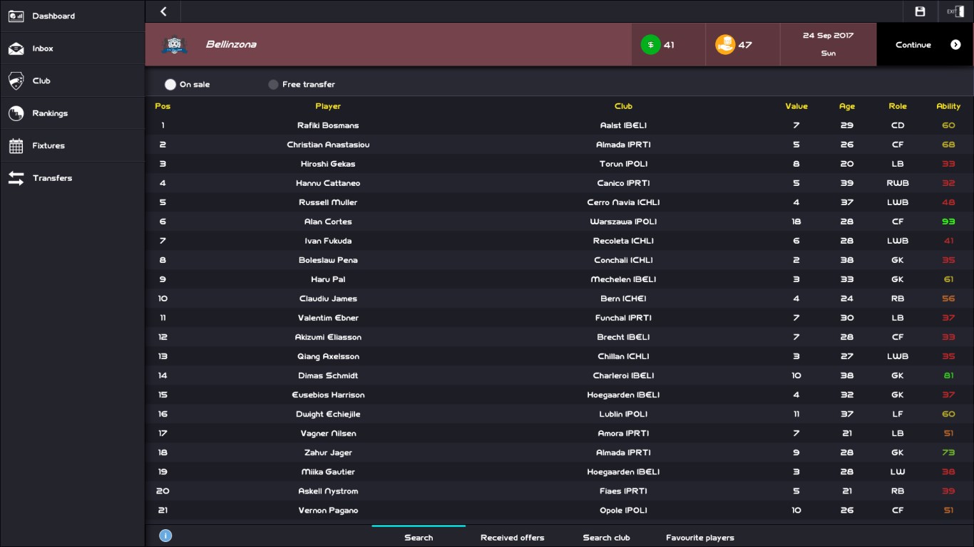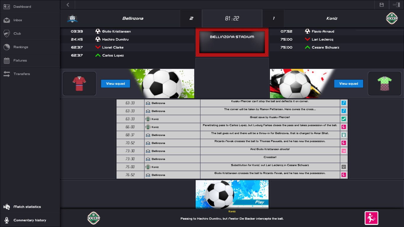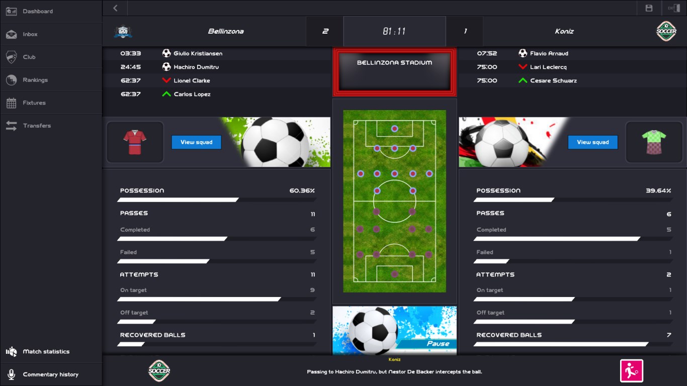 • Complete market experience. Choose from the "free transfer" list or make an offer to another club to acquire a player or to just require him on loan. But you will also have to accept or refuse the offers the other clubs will make for your own players. And, lastly but not least, keep an eye on other clubs' transfers!