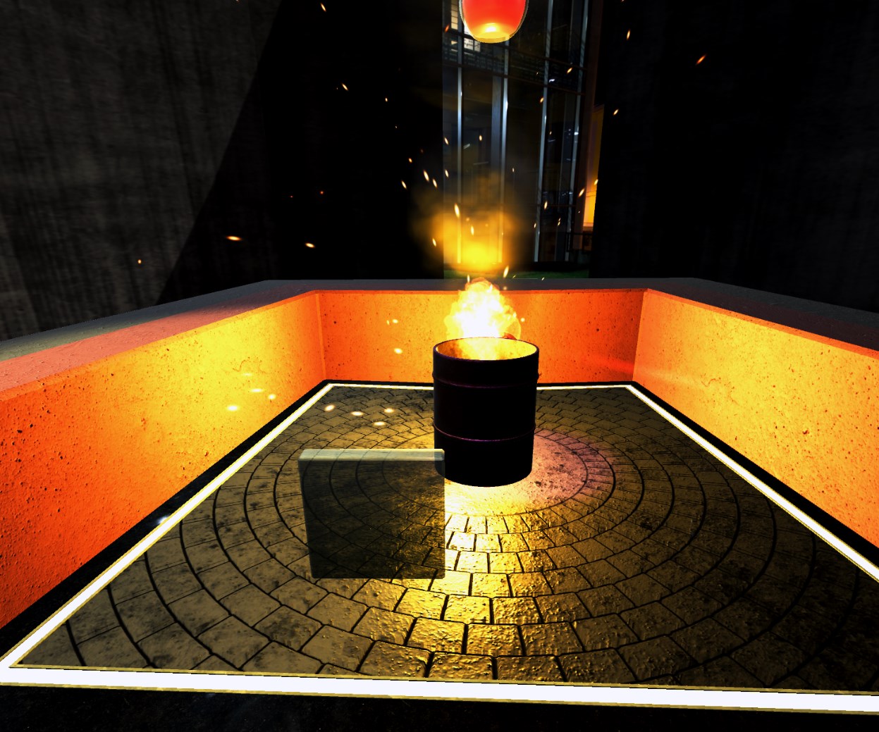 - Barrel mode: part of the arena is hidden by a barrel with fire