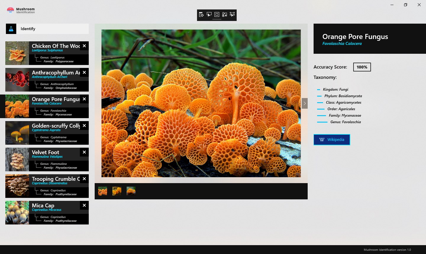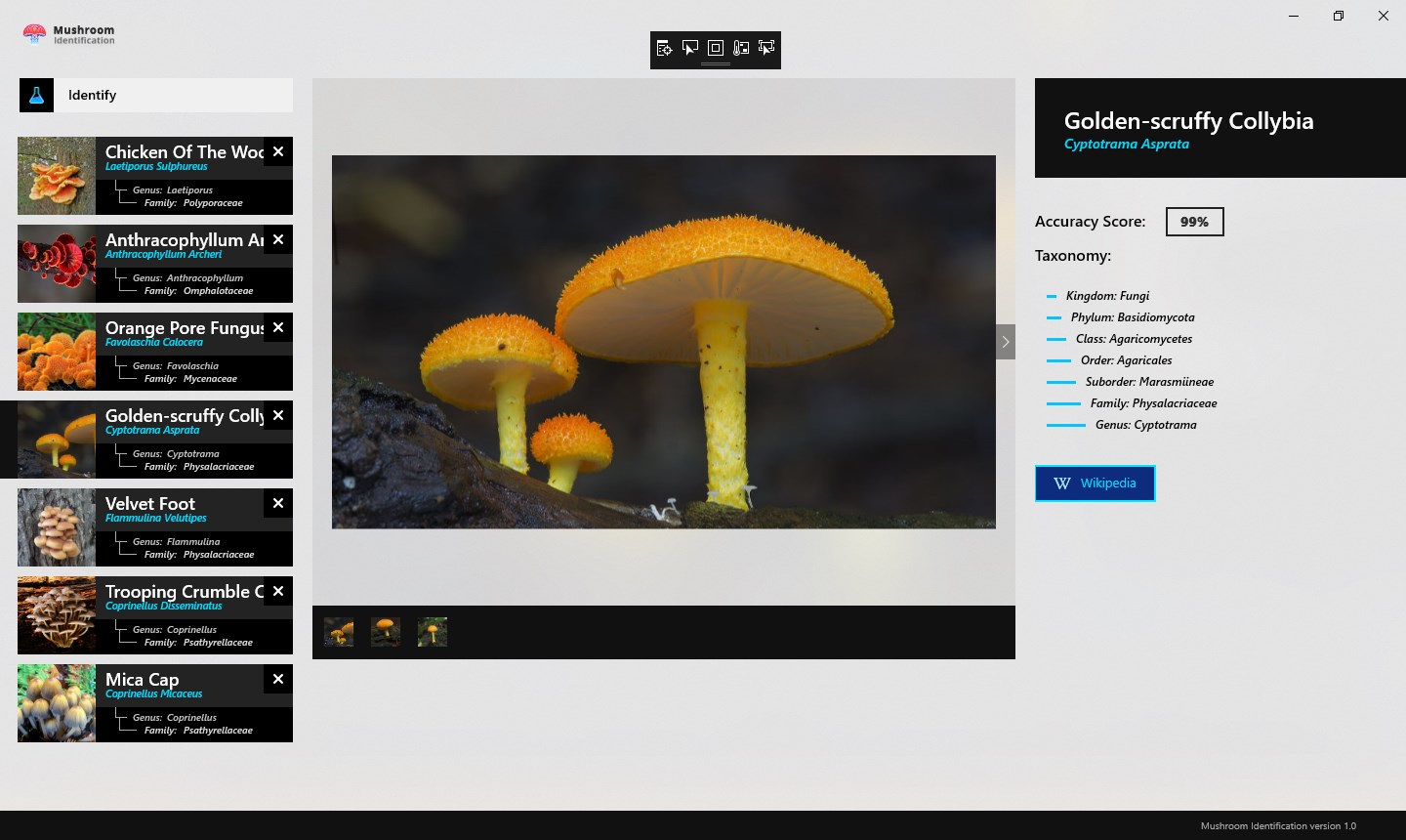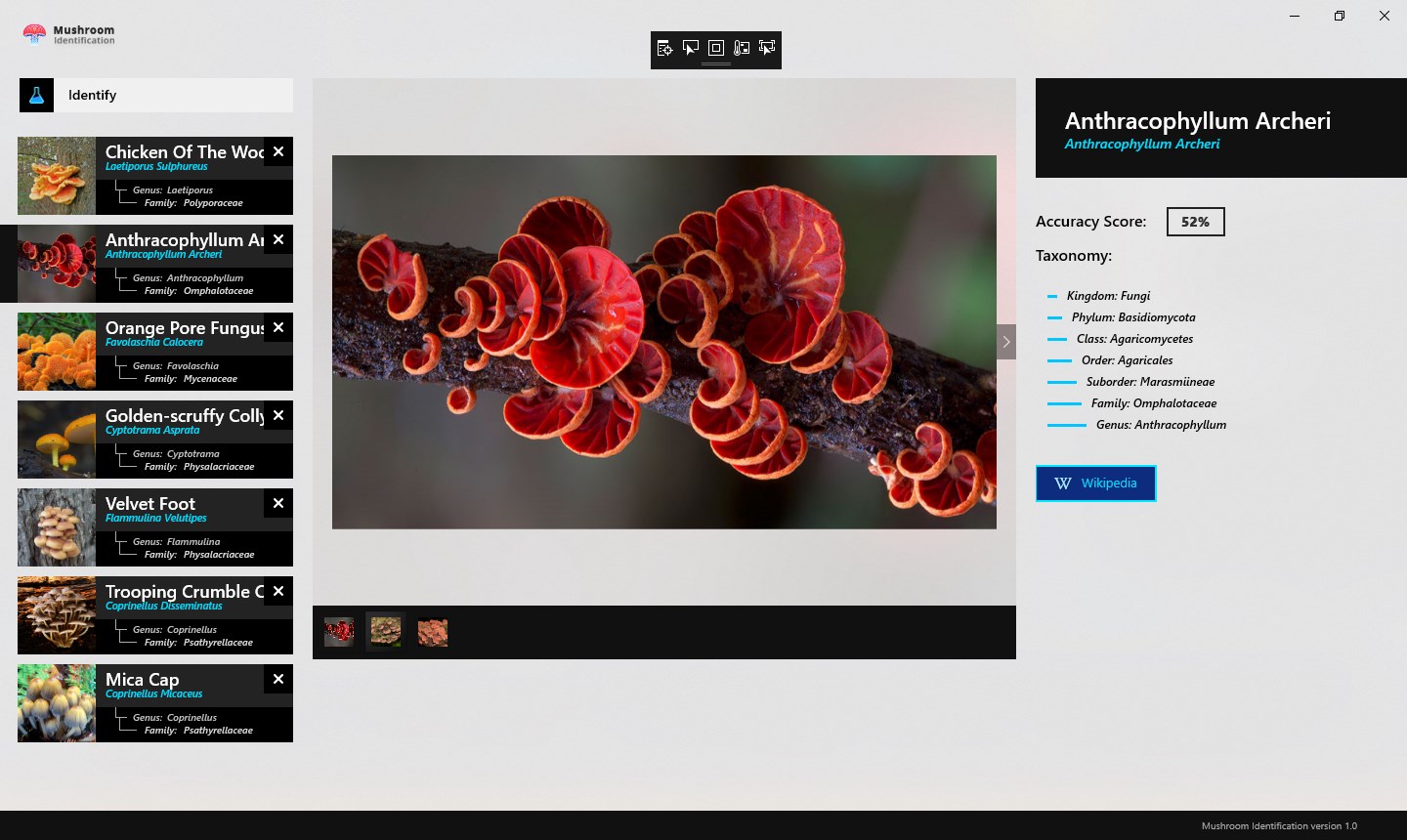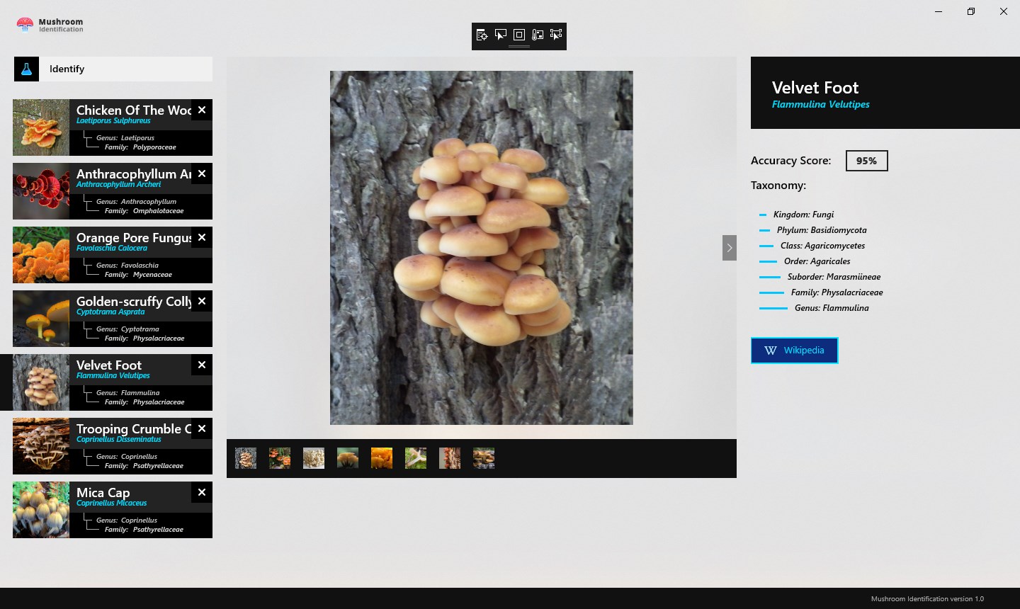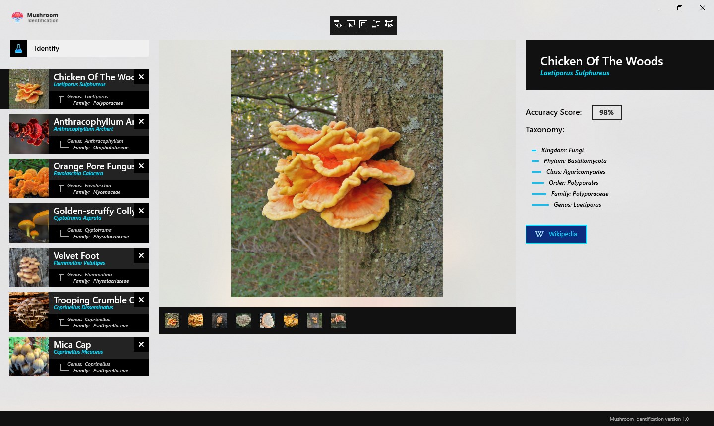 Instantly identify any mushroom from image using AI technology.High quality database maintained by scientists and collaborators around the world.Study captured mushrooms on Wikipedia.