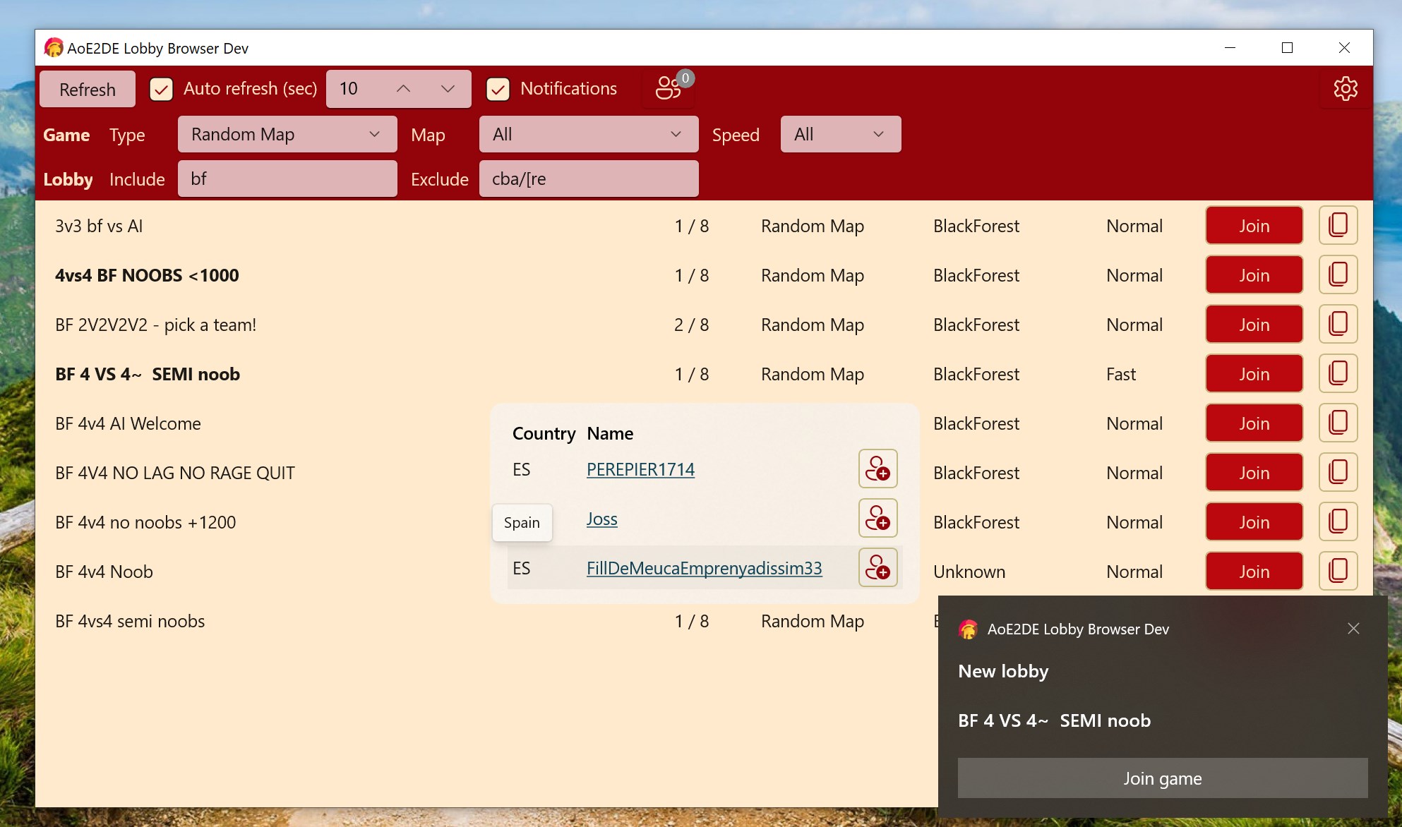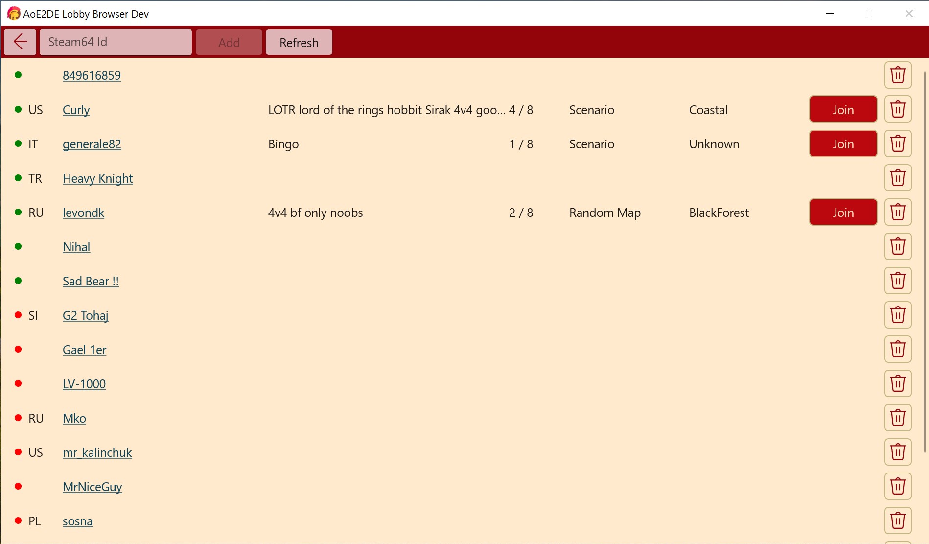 Lobby browser for Age of Empires II: DE