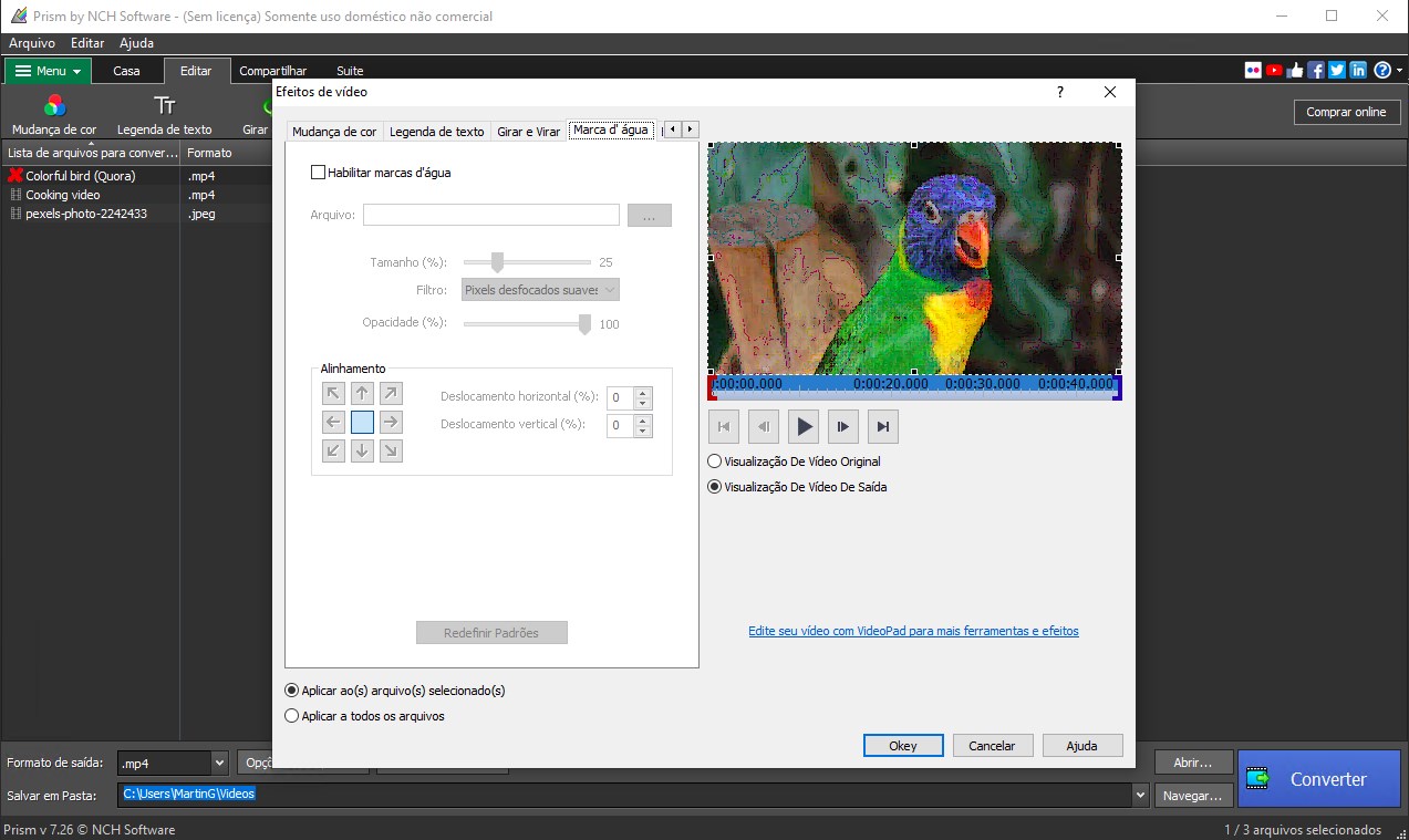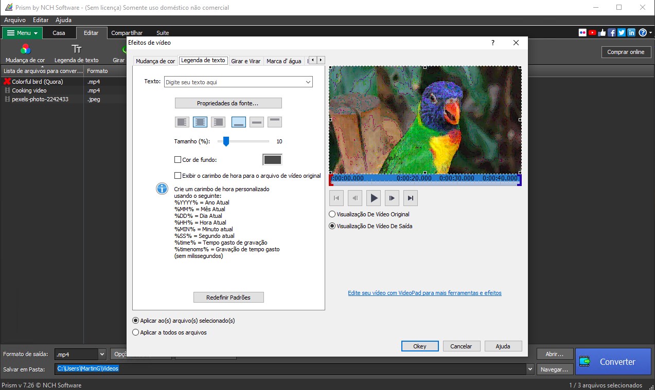 Converta ou comprima rapidamente seus arquivos de vídeoSuporta todos os formatos popularesInterface de usuário intuitivaConversor de vídeo em loteAdicione efeitos como marcas d\'água ou sobreposição de textoVisualize antes da conversãoConfigurações de saída ajustáveisAdicione arquivos de vídeo diretamente de DVDs