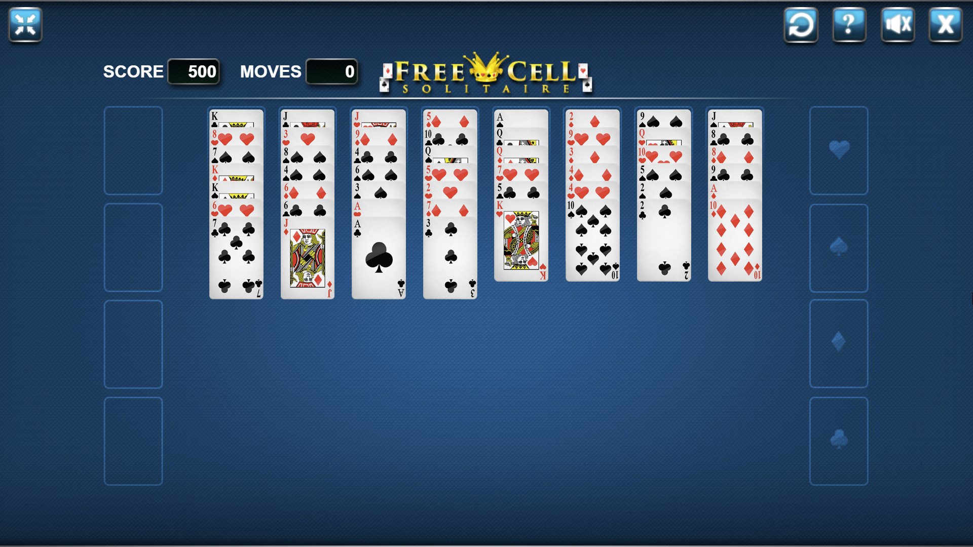 Play FreeCell Solitaire in the most classical settings. FreeCell is a solitaire card game played using the standard 52-card deck. It is fundamentally different from most solitaire games in that very few deals are unsolvable, and all cards are dealt face-up from the very beginning of the game.