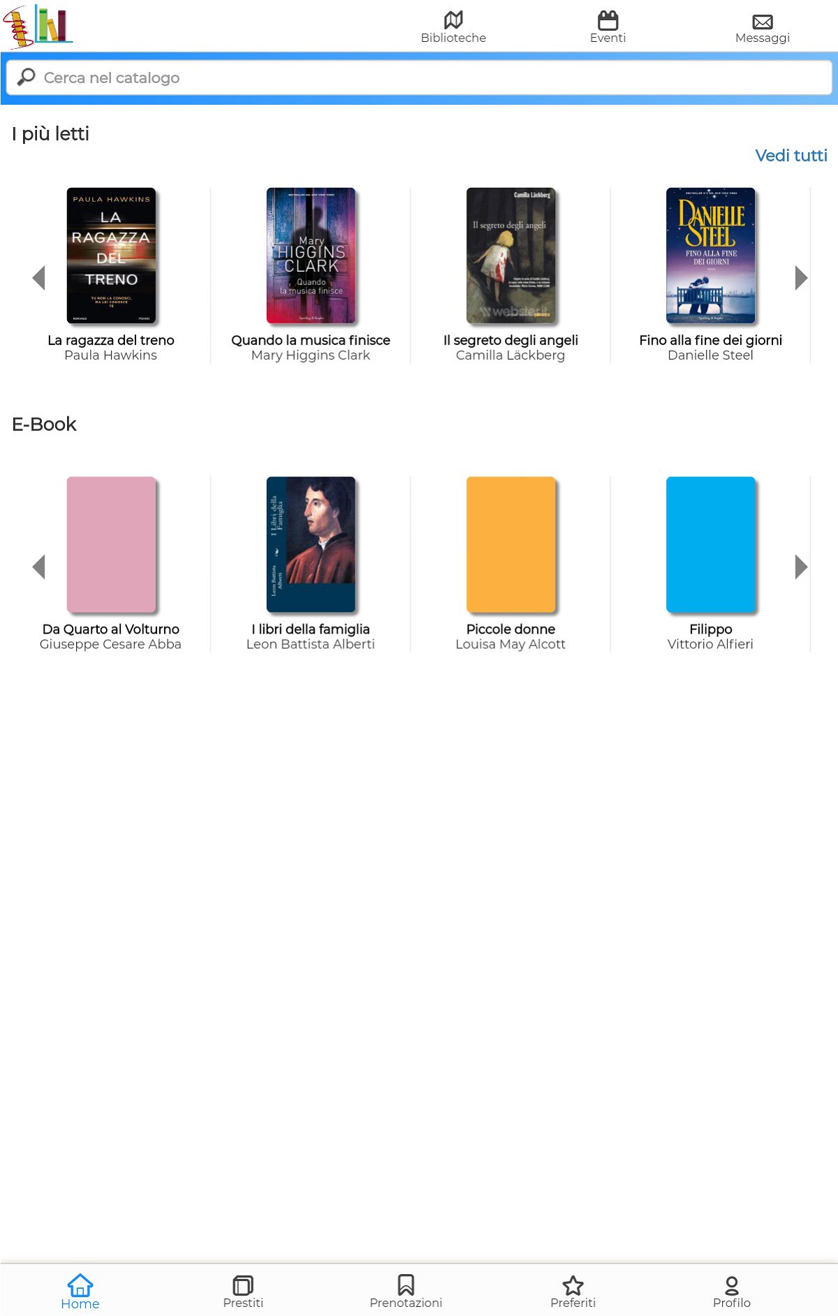 - consulta le vetrine con le nuove proposte di lettura, i titoli più letti e gli ebook;