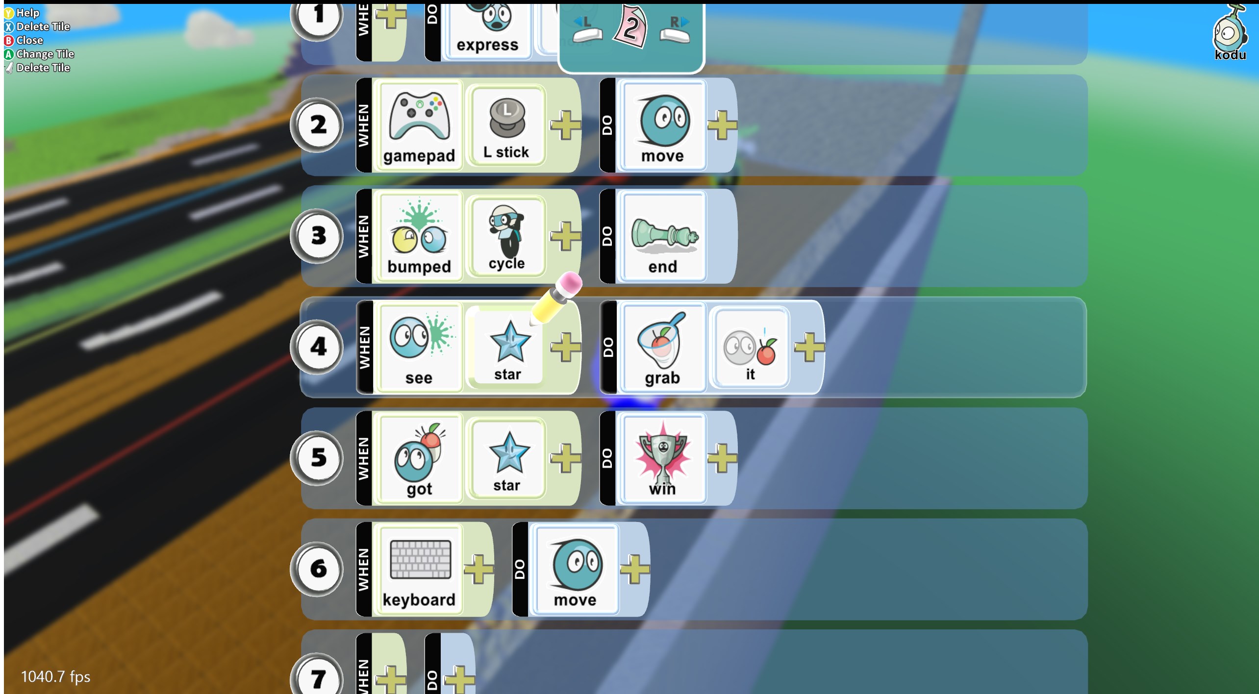 Kodu lets kids create games on Windows PCs via a simple tile-based programming language. Kodu can be used to teach creativity, problem solving, storytelling, as well as programming. Anyone can use Kodu to make a game, young children as well as adults with no design or programming skills. Kodu allows creators to build the world's terrain, populate it with characters and props, and then program their behaviors and games rules in a bespoke visual programming language. Games can be shared with other users world-wide via the Kodu Community site. Download games from other users to play and learn from.