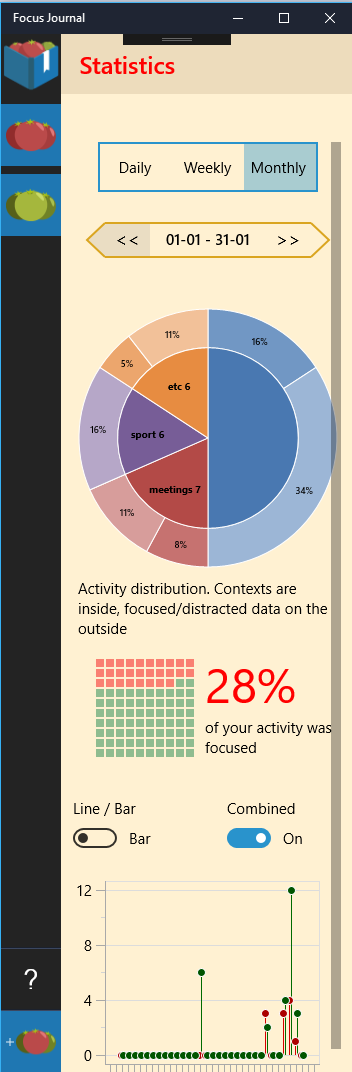 In other cases, when you get distracted or stop focusing early - you get a green Pomodoro.