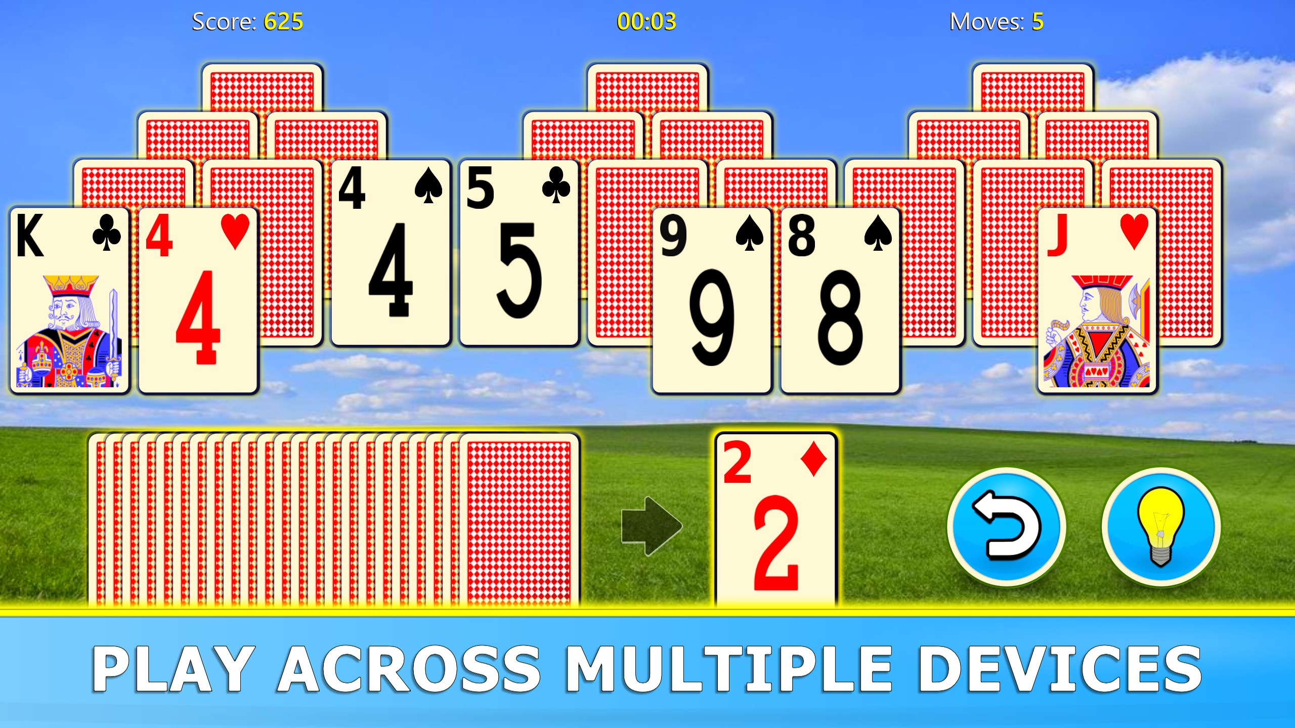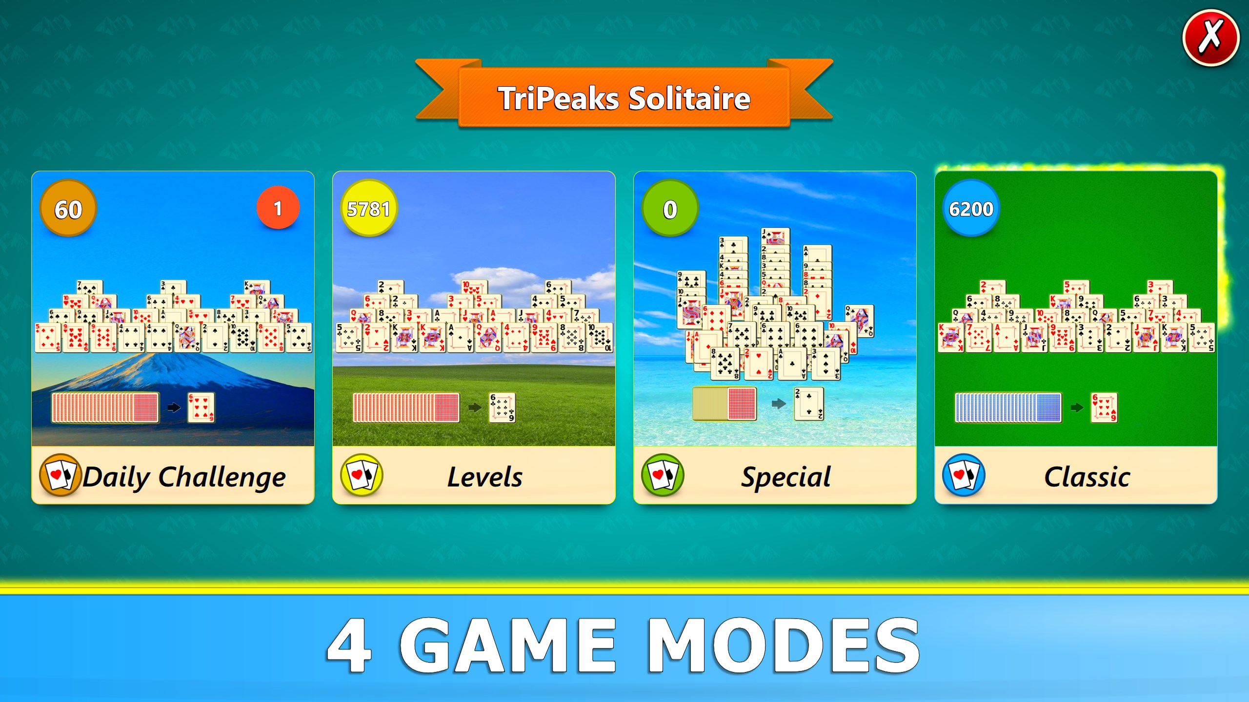 TriPeaks Solitaire Mobile is a very fun and popular card game. 4 Game Modes: Classic, 290 Special Maps, 100.000 Levels and Daily ChallengesComplete personalization options: card fronts, card backs and backgroundsAdvanced Hint optionUnlimited UndoEasy to play and simple to useBeautiful and simple graphicsSmart In-Game HelpStatistics and many achievements to unlock