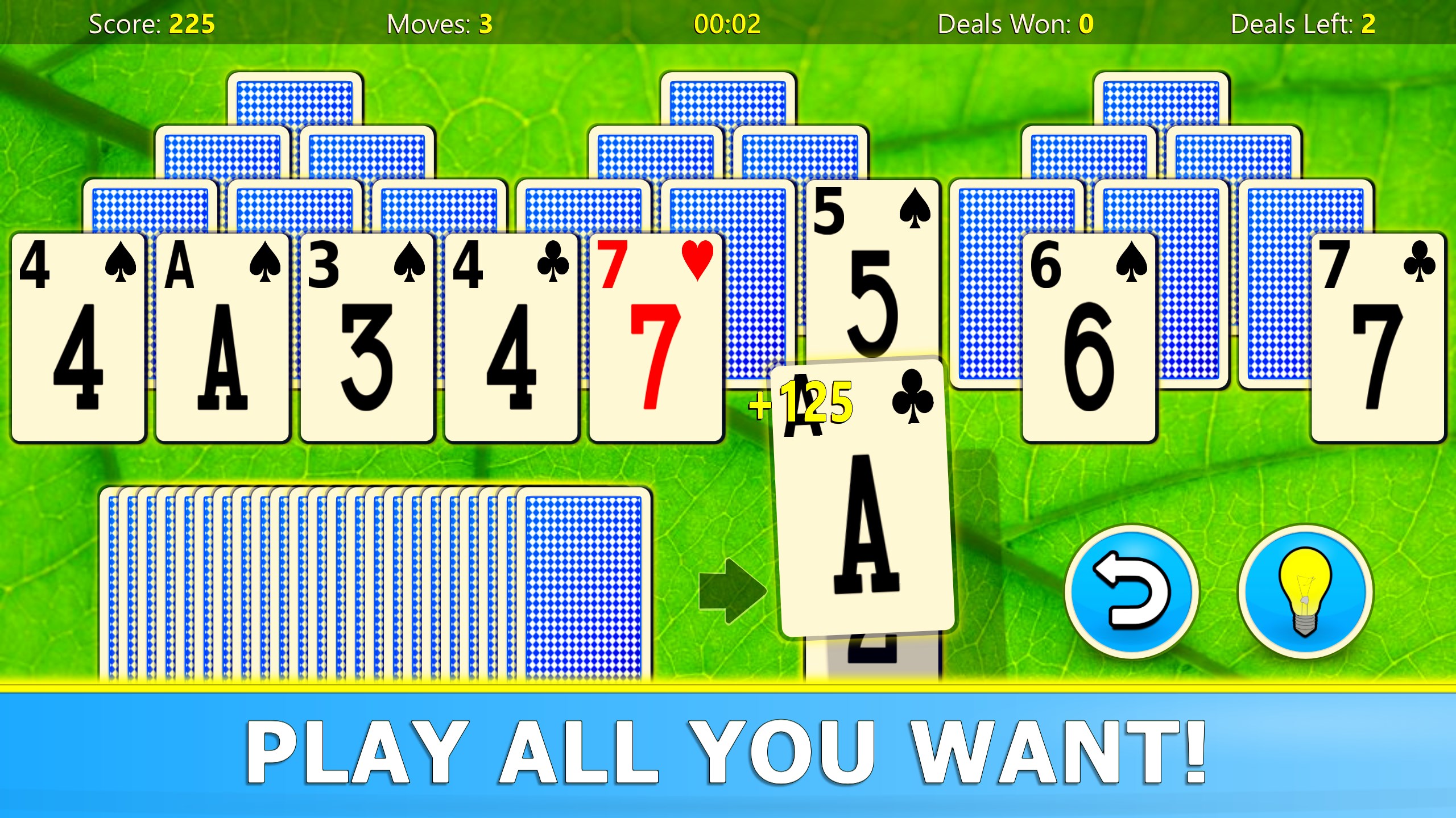 - You are dealt cards only 2 times and after that the game ends. If you clear a board you receive a free deal.