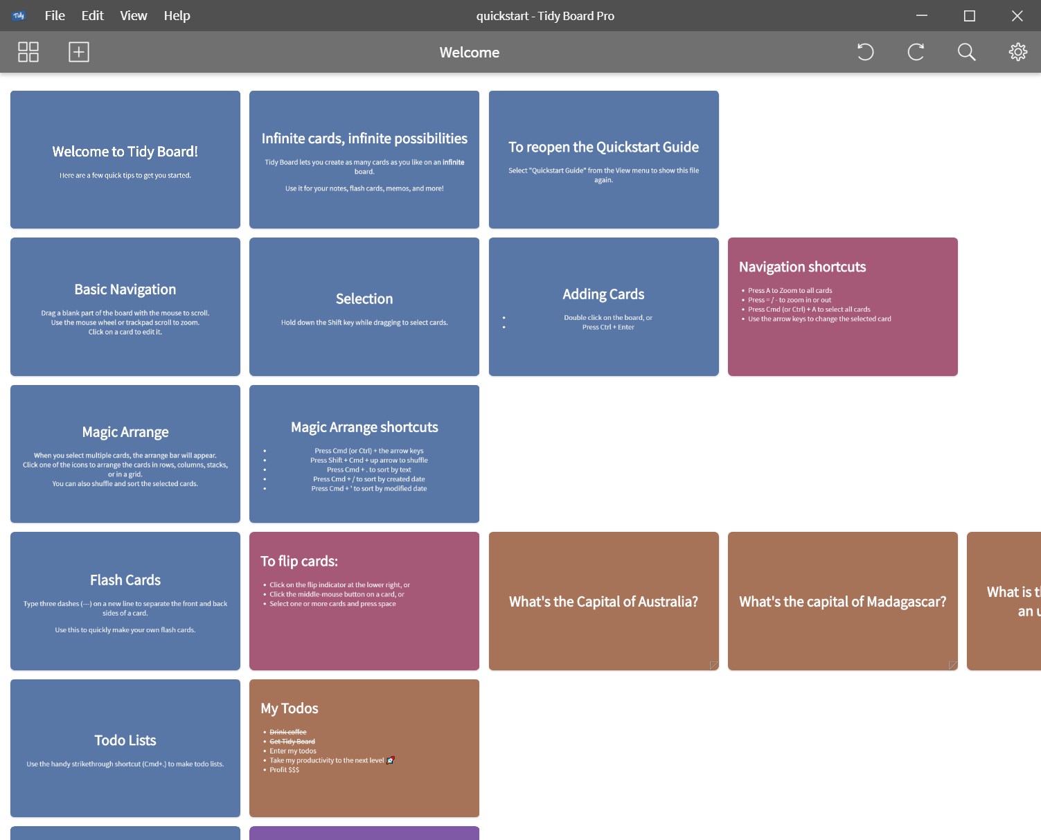 Fast note taking on beautiful cardsInfinite cards on an infinite boardMagic Arrange: Instantly organize and sort cardsCreate flash cards for learning any subjectEasy and powerful text formattingPlan your projects, big and small