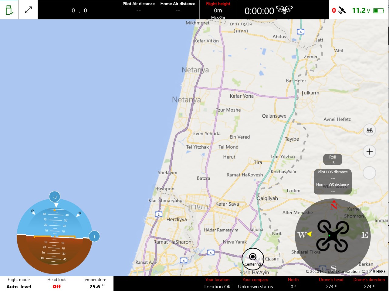 * Drone directions - Head direction and drone's direction (Compass).