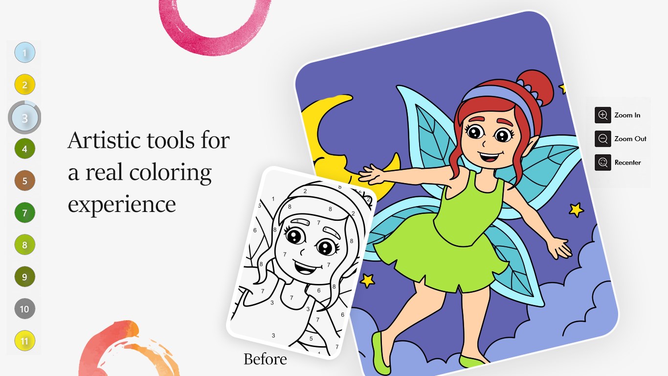 The app features a wide range of coloring pages, from animals and nature scenes to famous landmarks and portraits. Each coloring page is divided into small numbered sections, and the app provides a color palette and corresponding numbers for each section. Users simply select the appropriate color and fill in the sections with the matching numbers to create a beautiful and detailed work of art.