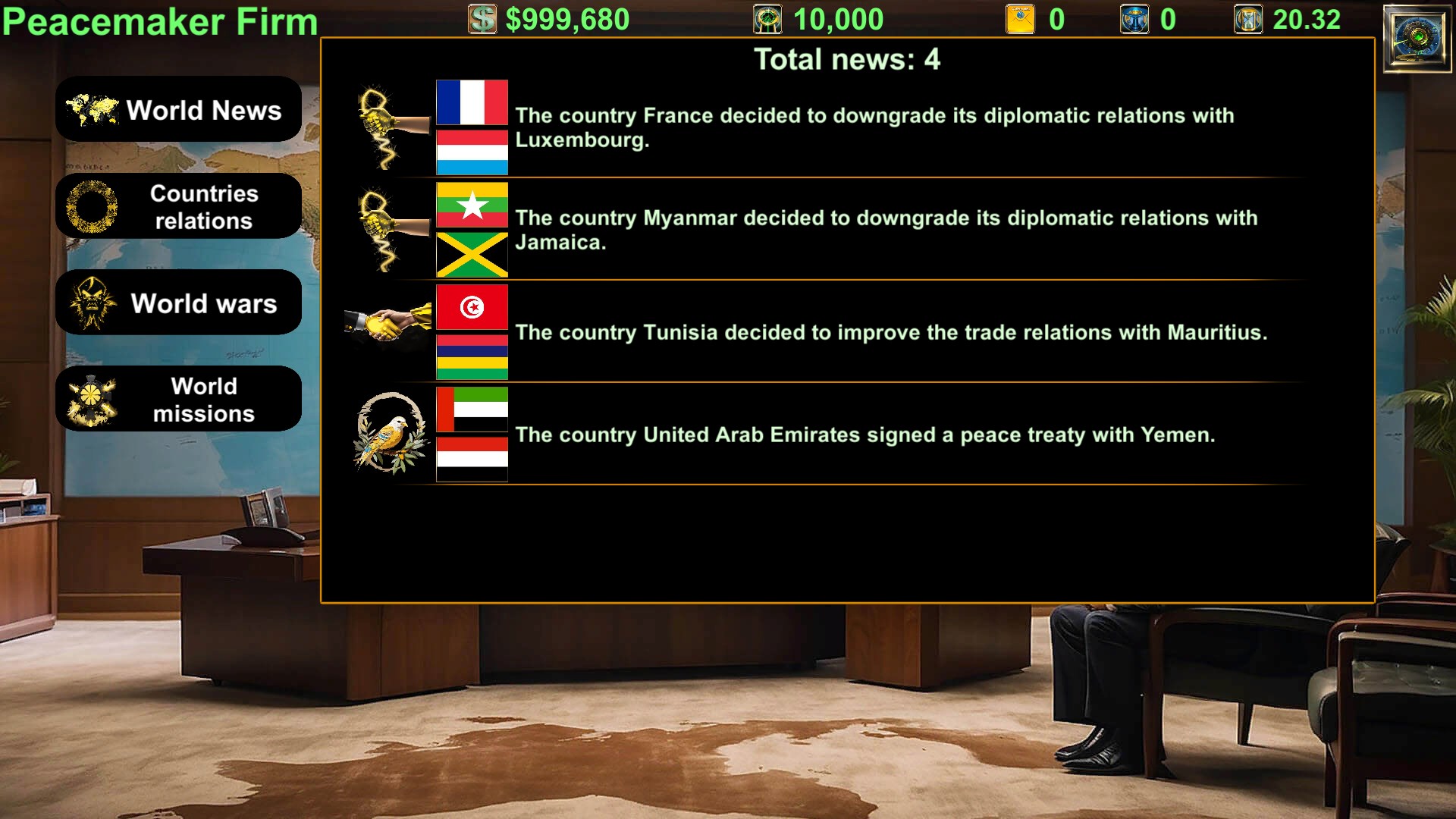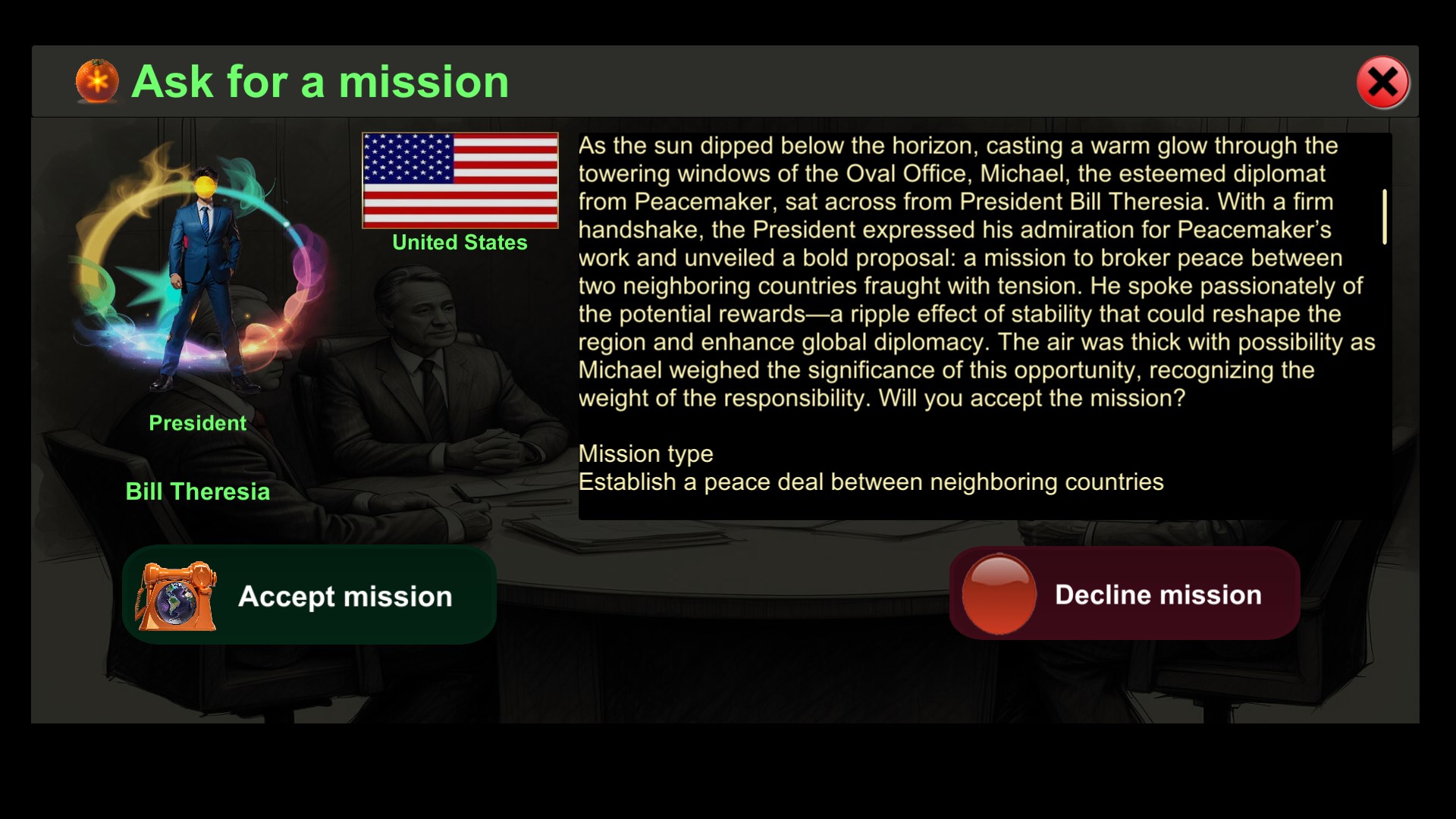 Step into the shoes of a world diplomat, select your diplomat name and firm, and embark on a journey to make a meaningful change in the world.