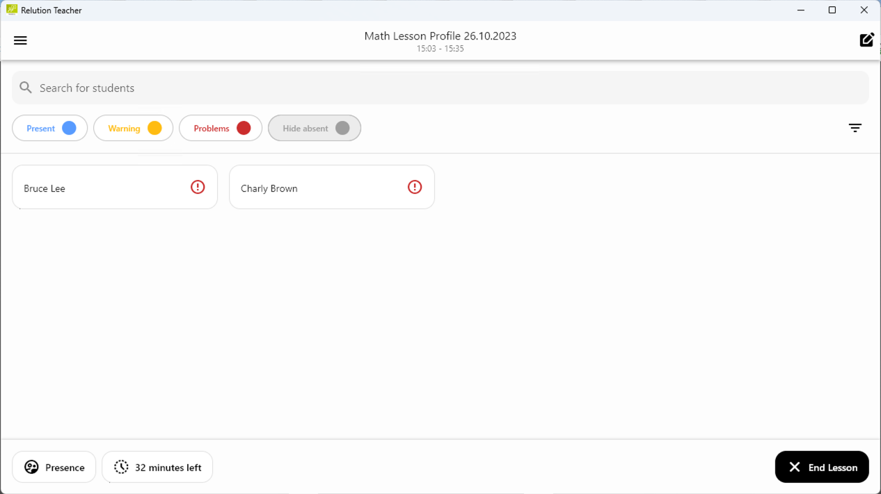 In ad-hoc mode, students from different classes can be grouped together to allow teachers to be flexible in their daily work. Admin mode helps teachers manage the entire school organization. This allows Administrstor:innen, even independently of the teacher, to terminate a foreign class at any time.