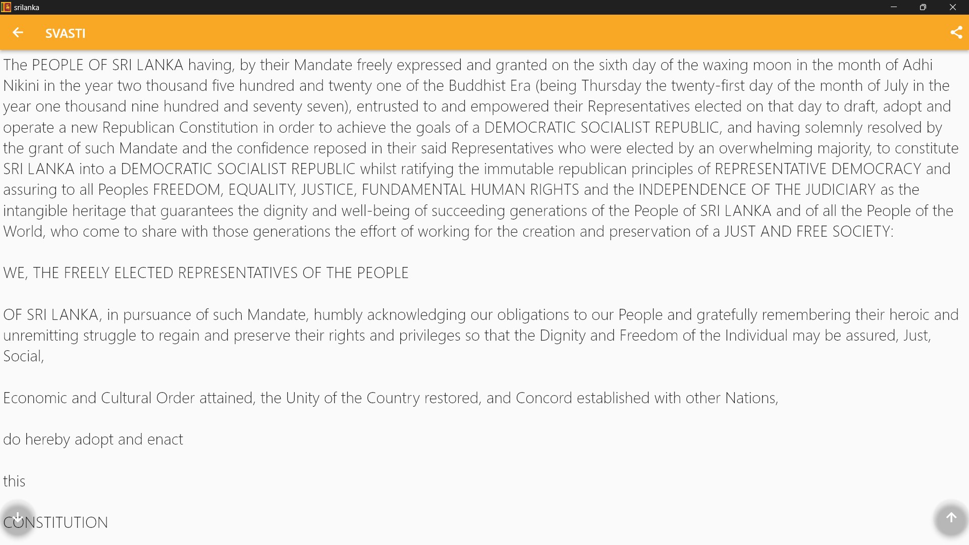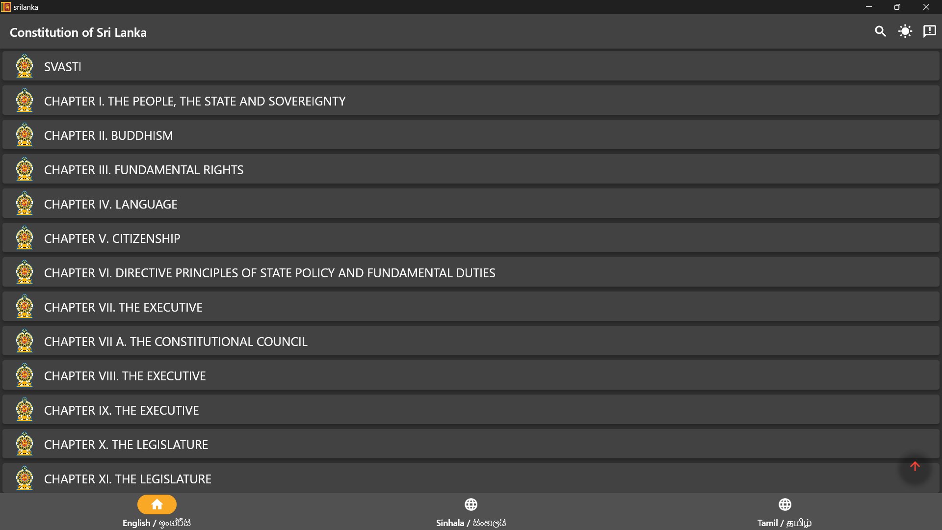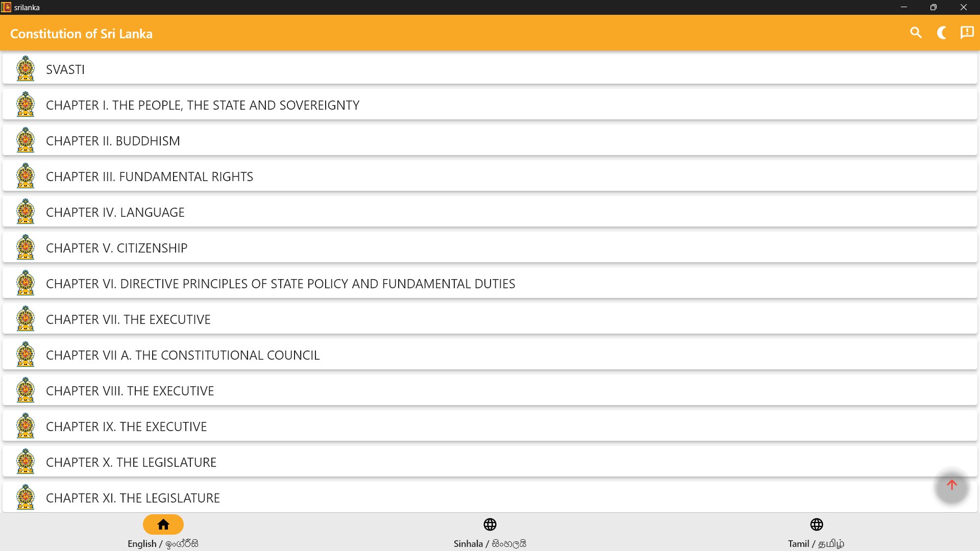 This application contains the Constitution of Sri Lanka in English, Sinhala and Tamil.