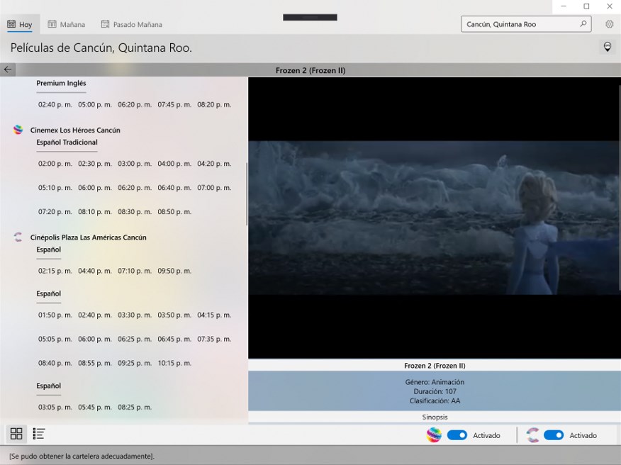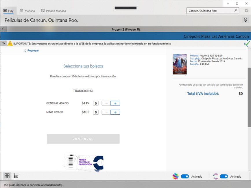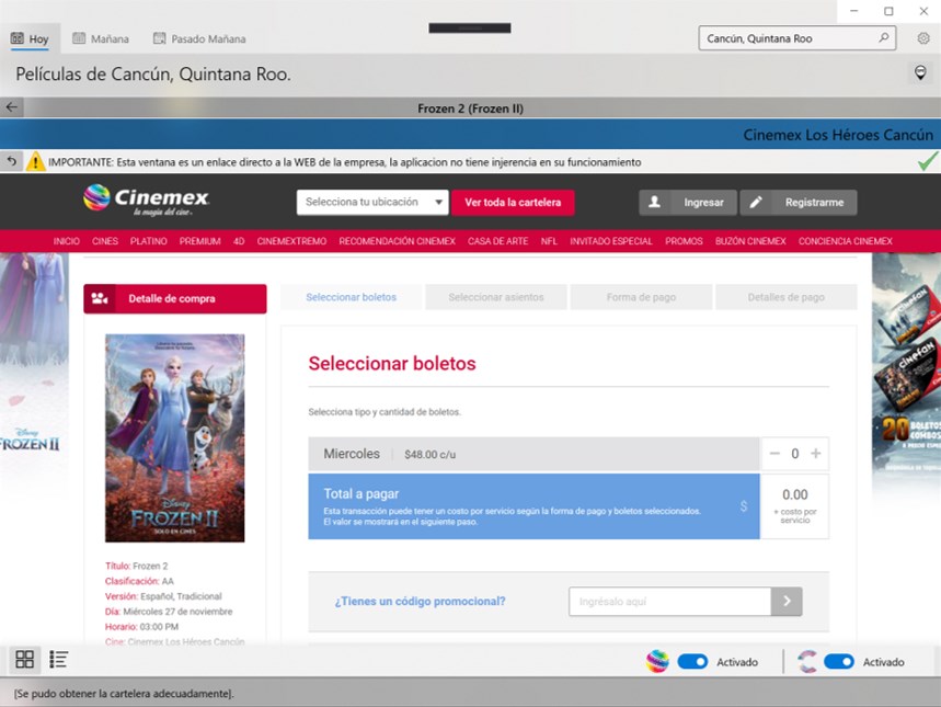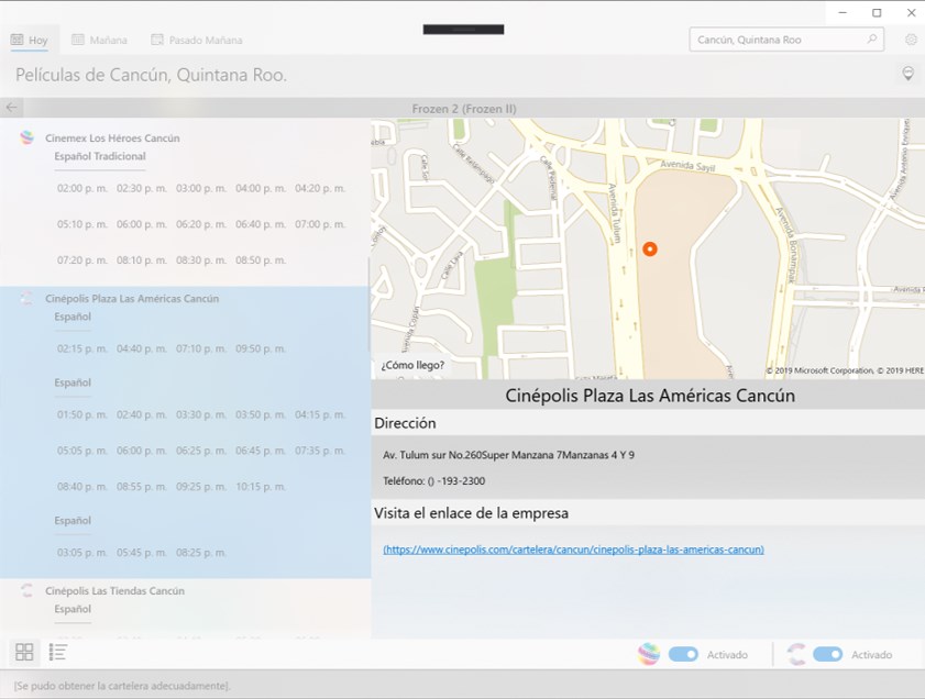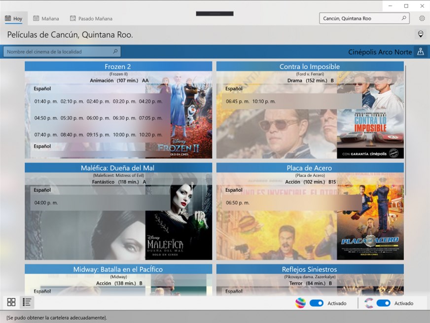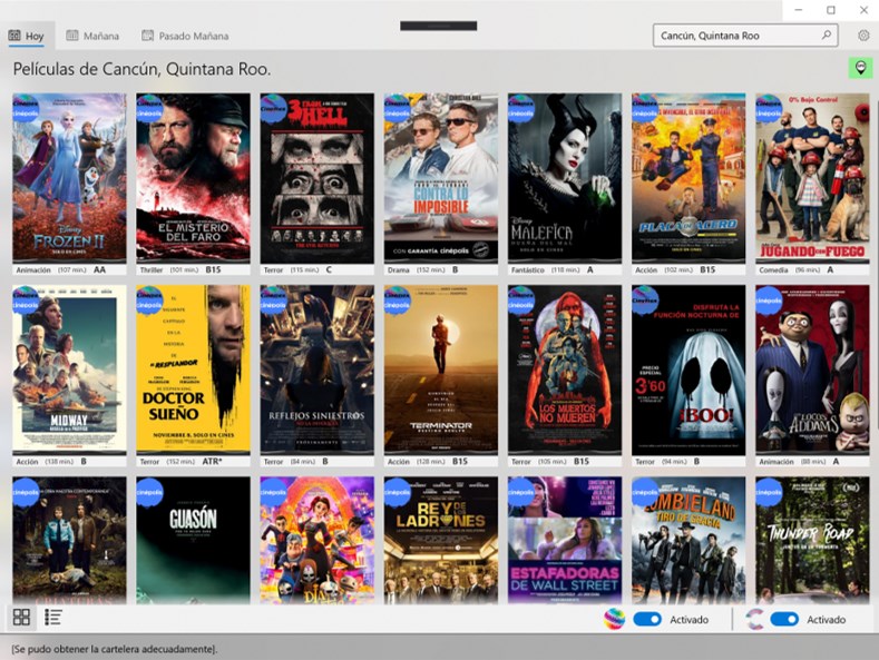 With this application you can get the movie plays in the most important movie theaters in the country (currently Cinemex and Cinepolis).