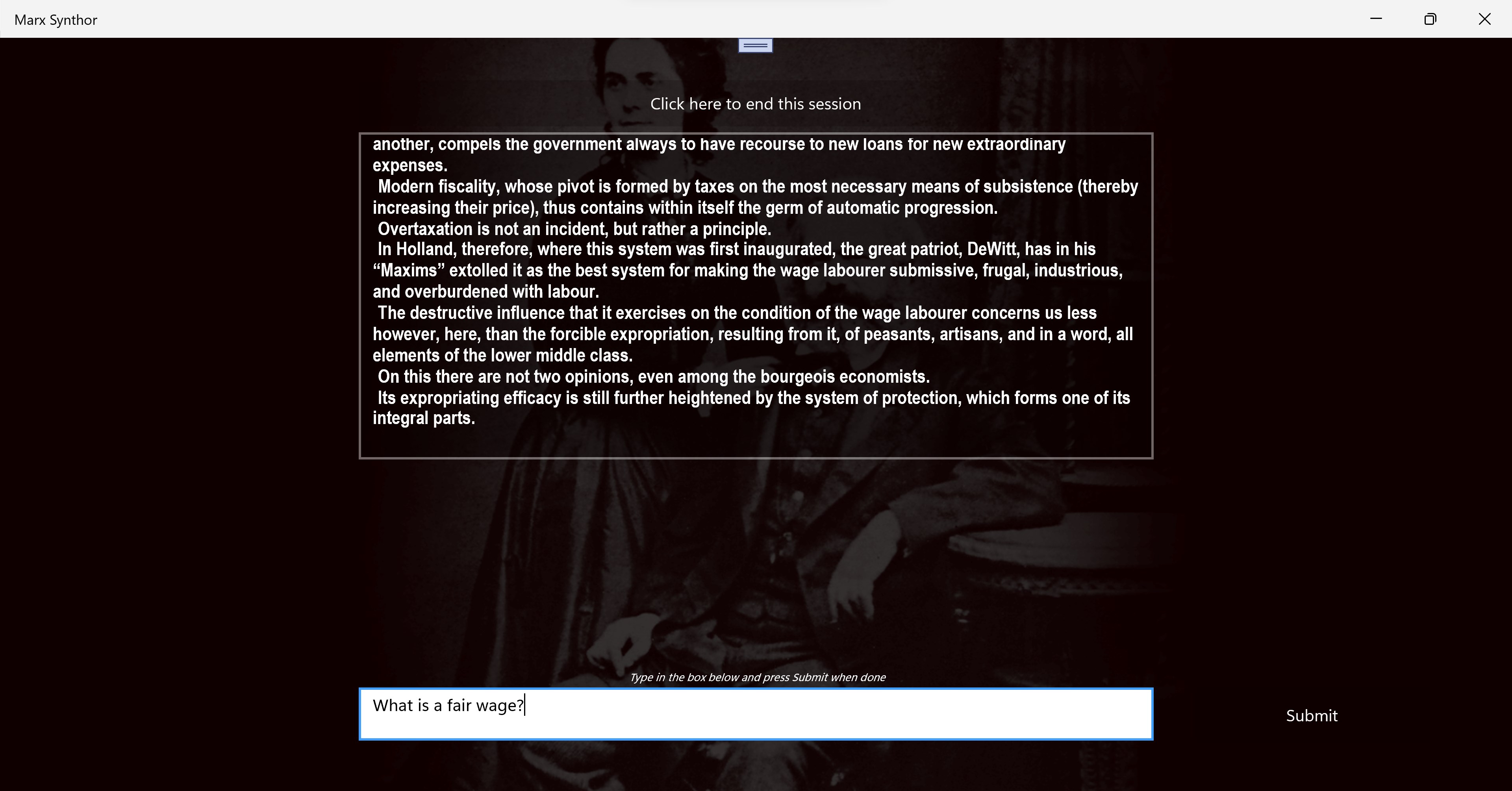 Ask questions to Karl Marx!Quote accurately from Marx\'s writingsUnderstand Karl Marx\'s philosophy quickly and from the original sourceAppreciate the ideas of Marx about labour and wages