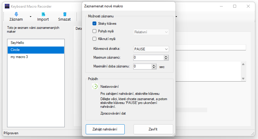 The program records keystrokes on the keyboard, mouse button presses, as well as mouse movement. The subsequent record can be freely edited and then, of course, played.