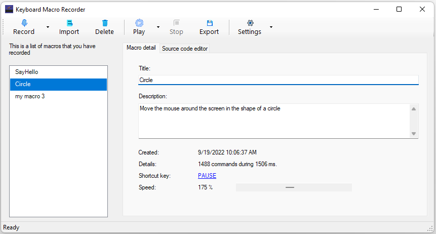 It also allows you to change the playback speed - for example, you can play your macro 10 times faster or 10 times slower.
