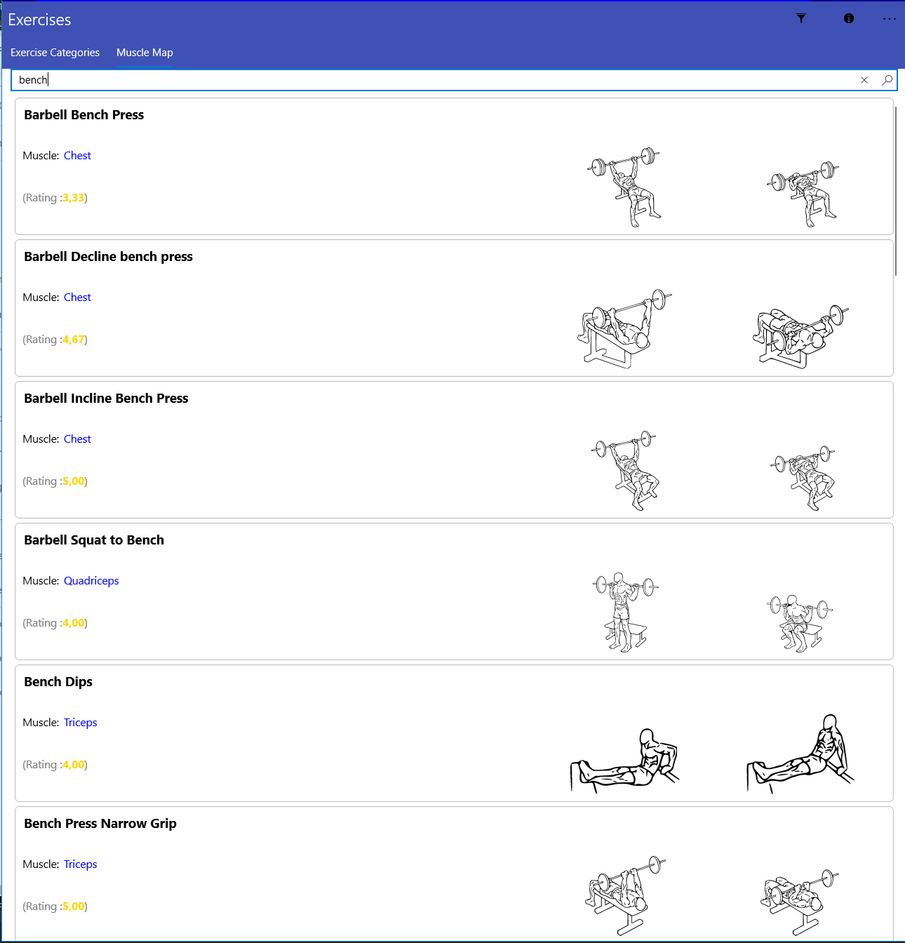 * Muscle Map app targets that you can easily find an exercise for the muscle group which you would like to work.