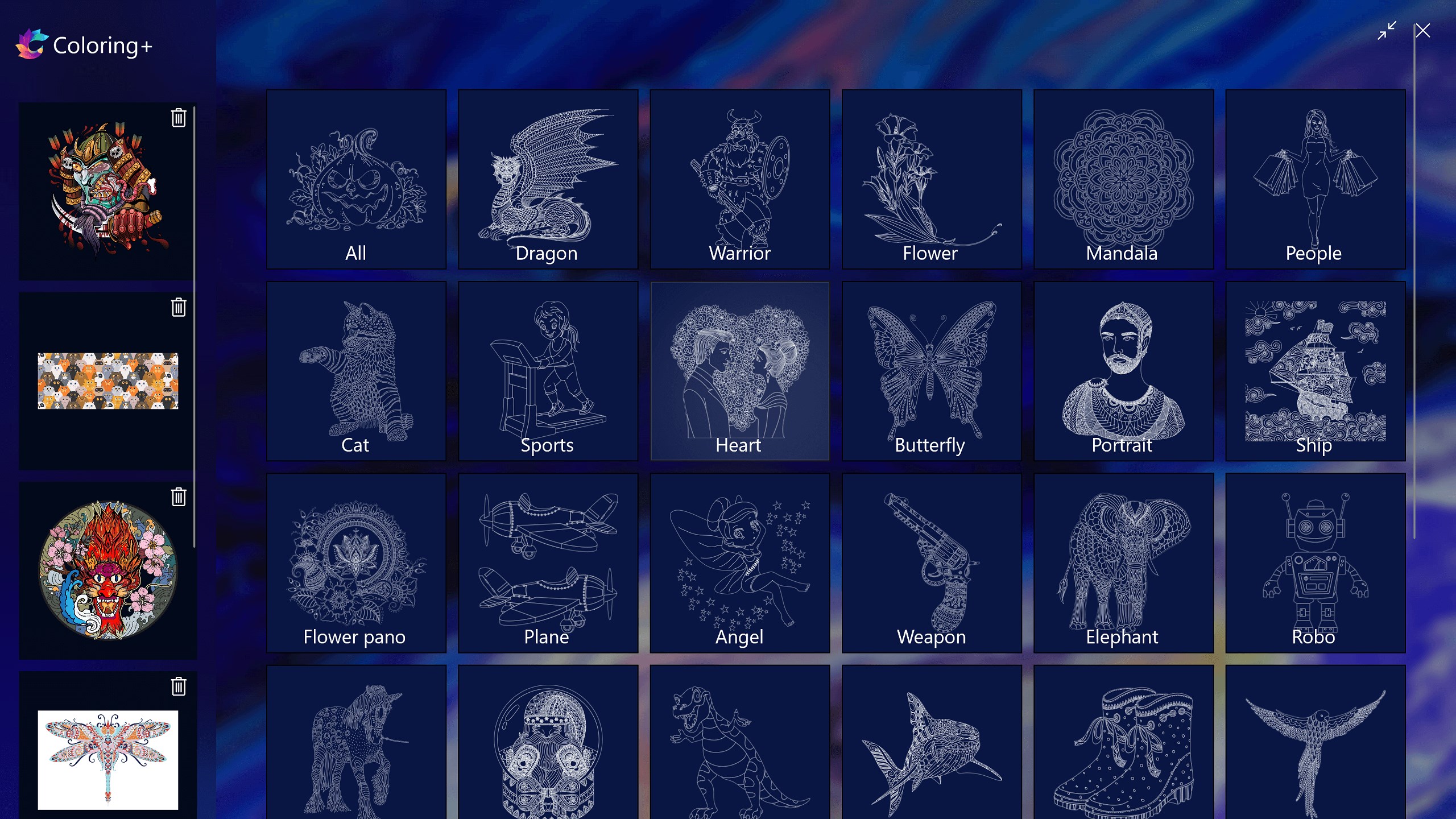- Color stunning mandalas, animals, nature, dishes, unicorns, dragons and more.