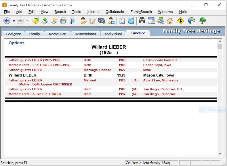 TreeTips™ Have you ever wished that someone could do your research for you? TreeTips™ is an innovative technology built into Family Tree Heritage that displays hints for possible records about your anMemories Manager New! Link Family Tree Heritage to FamilySearch records. Quickly and easily exchange your scrapbook items with the Memories on FamilySearch. Direct Access to Powerful Genealogy Sites Family Tree Heritage is fully integrated with the new FamilySearch Family Tree, Myheritage, and Findmypast. Import records directly and build your family treeLanguage Options Get started quickly with a friendly user interface and options for English, French, Spanish, and German. Choose the language you wish to use.Powerful Genealogy Design Tools Create colorful trees, heirloom-quality charts, reports and family books that will be cherished by your family members now and in future years, with Family Tree HeritagInteractive Research Timeline Uncover clues to discover more information about your ancestors and family history. Find events that may have affected your ancestors, such as a war or immigration issue.Tags Tag your ancestor similarities, such as geographic location, medical conditions, and more! Create your own set of Tags and assign up to three Tags to individuals in your database. Color Coding Quickly identify individuals and family lines on your family tree. This four-color filing system allows you to add background colors to the name boxes for individuals and/or family linesDesign Trees, Charts & Reports! Create colorful trees, heirloom-quality charts, reports and family books that will be cherished by your family members now and in future years