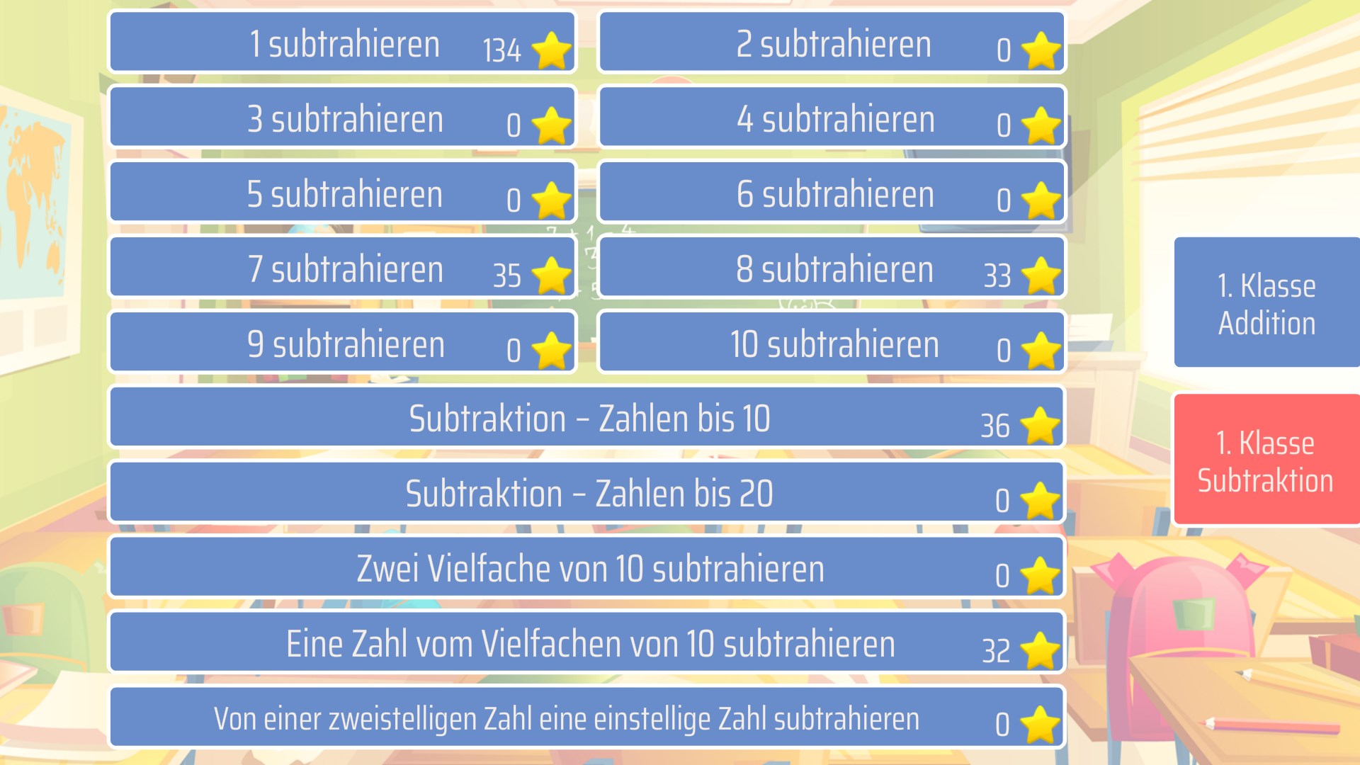 Mathe spielerisch lernen und üben. Dank handschriftlicher Zahleneingabe ist es möglich, das Ergebnis einfach auf den Bildschirm zu schreiben. Folgende Aufgabenbereiche stehen zur Verfügung: